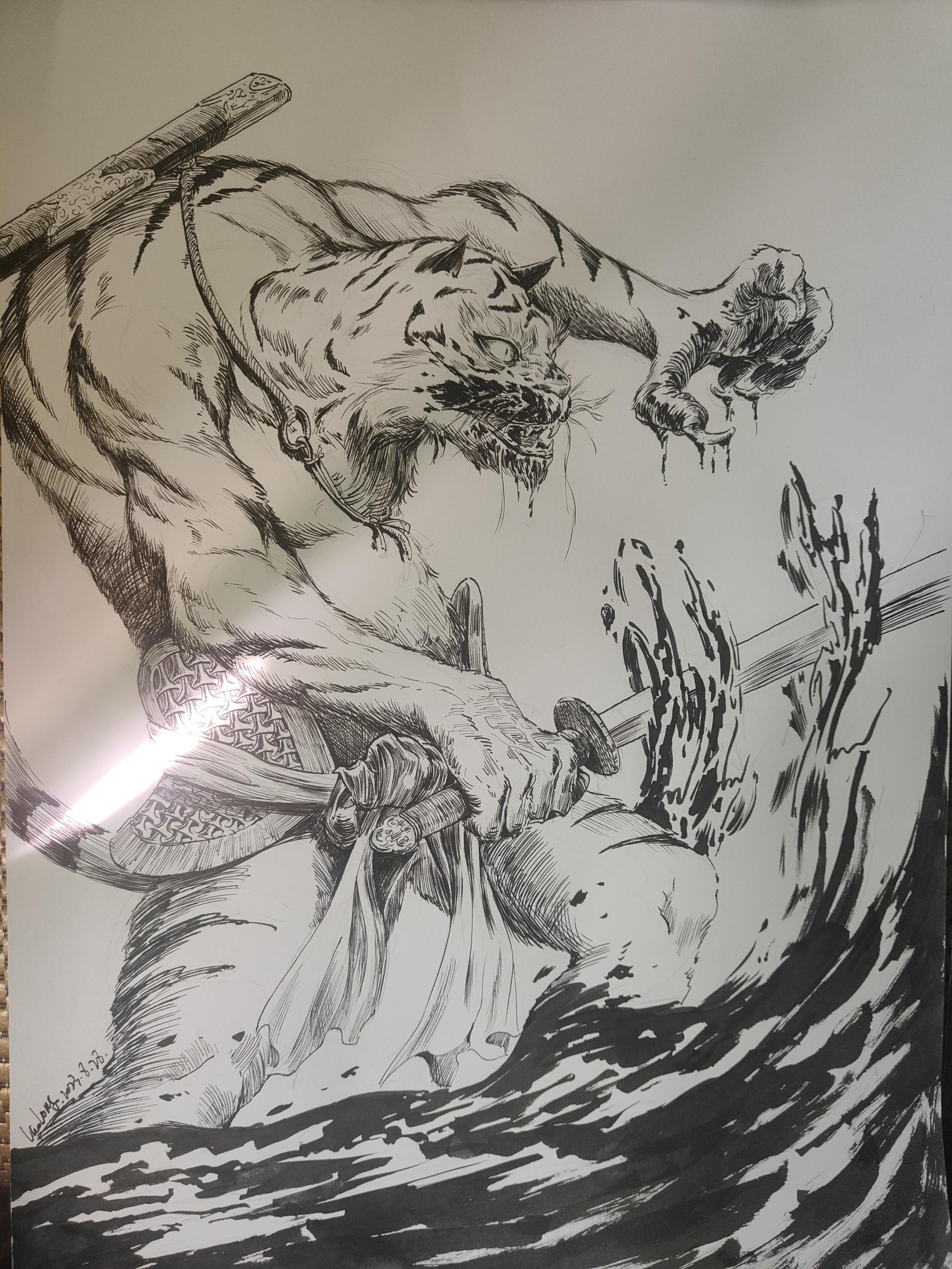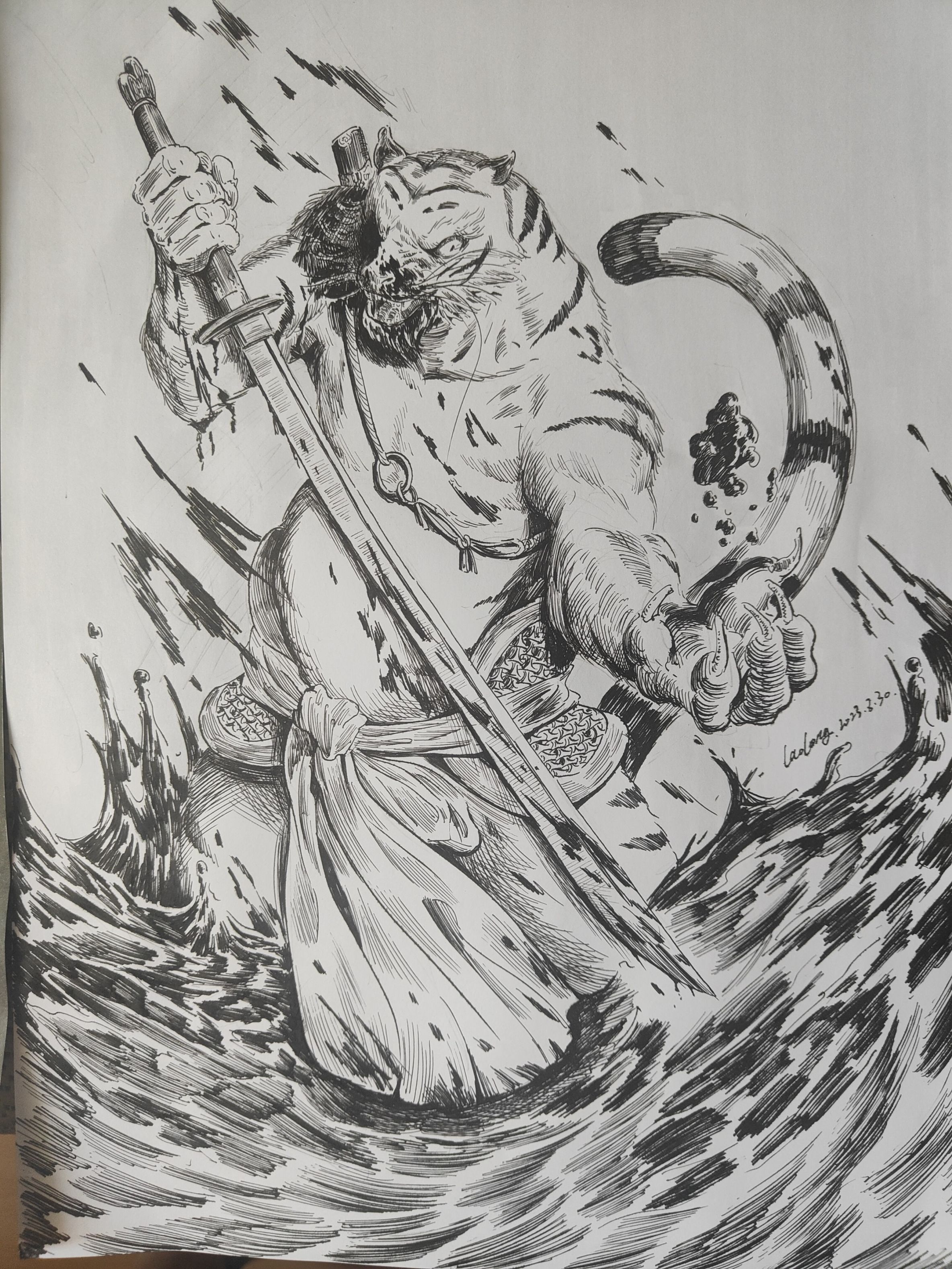这其中除了猴子这张是游刃有余脑子里都画好了的,其他都是尽力局,盒友们也在我日更期间给了一些建议。但我确实水平有限,热爱是热爱,实力是另一回事,以后慢慢成长吧。毒敌大王我是最苦恼的,根本截不到高清图,全靠轮廓脑补,赤寇马猴坑了有点原因是最近工作忙,但又坚持每天临摹漫画速写可能有点累脑子没用上太多,惯性画完的。今天头脑清醒,猴子我就很满意。