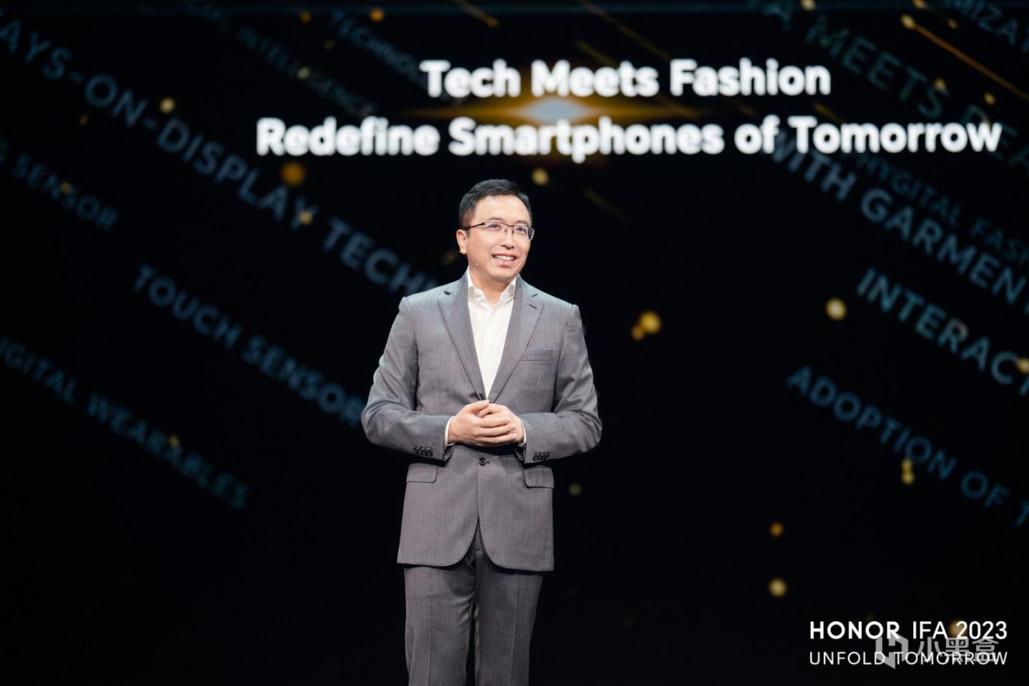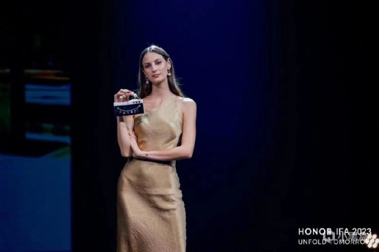 榮耀終端有限公司CEO趙明,在IFA開幕式,發表題爲《展開未來(Unfold Tomorrow)》的開場主題演講,展示了新一代摺疊旗艦榮耀Magic V2革命性創新技術的海外首秀,打破直板機與摺疊屏邊界。