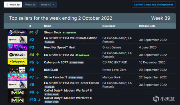 Steam公开新一周(9月26日至10月2日)软硬件销量榜,V社掌机Steam Deck仍是榜首,已经十八连冠。