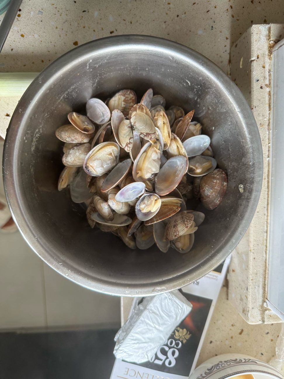 花甲煮熟备用