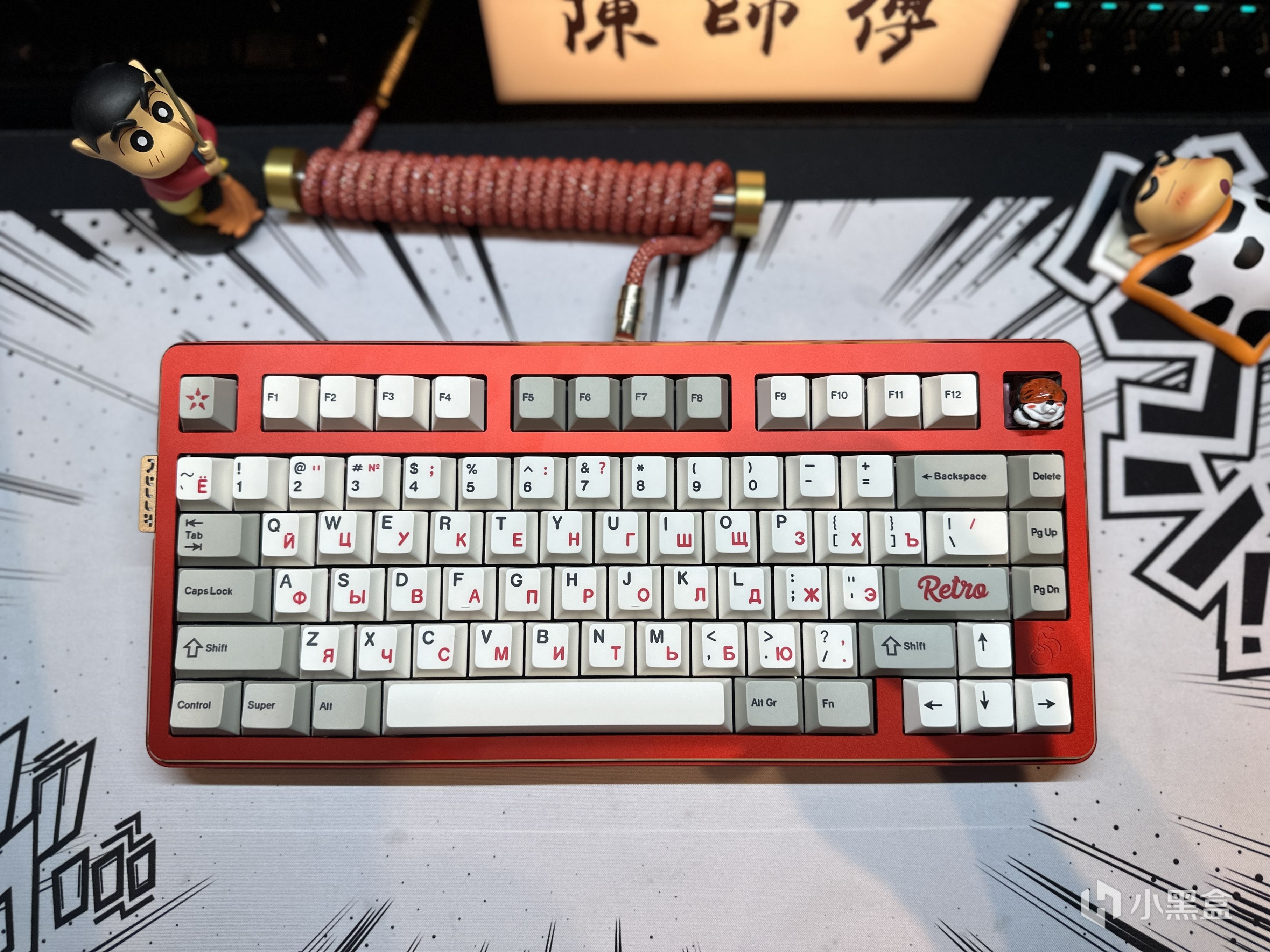 由於我這是正紅色套件,比較難搭鍵帽,思來想去,還是搭配一套復古俄文,來點不一樣的感覺。