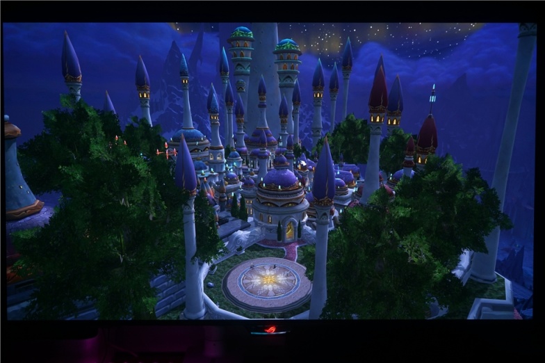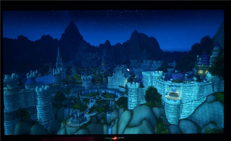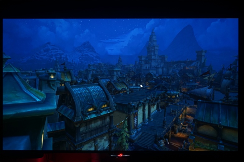 達拉然,星空下,當年無數隊伍從這裏出發前往冰冠堡壘,絡繹不絕的坐騎穿梭尖塔之間,而今巨擎48OLED裏只有寂寥的羣星和尖塔,再無其他;往日熱鬧的鐵爐堡門口,現如今冷冷清清;夜幕中的庫爾提拉斯,上面都是夜景,不是我只在晚上上線,因爲我個人覺得巨擎48OLED顯示下的夜景更加有質感,這就是OLED屏幕的特點,黑是純淨的黑,質感沒的說。