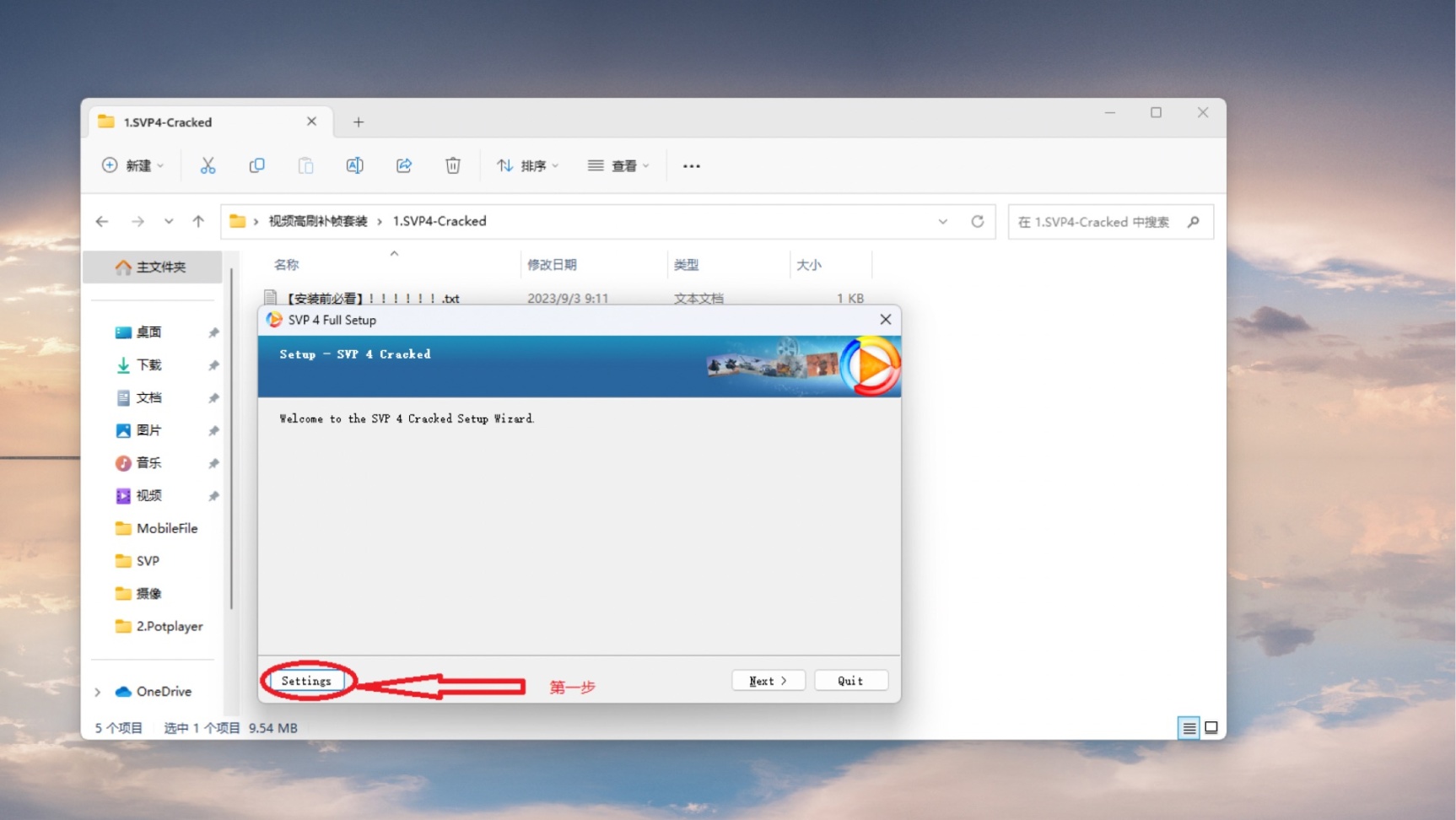 解压好之后,点击安装包内的cracked.exe文件开始安装SVP插件