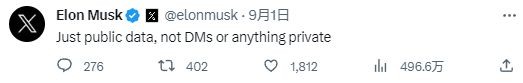 马斯克称,自己只会使用公开数据进行训练,用户的私人数据不会被侵犯。公开数据理论上属于公共资源,公司有权利利用,关键是数据如何收集和使用是否符合隐私保护原则。
