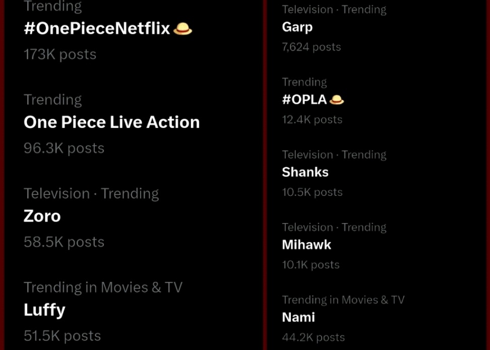 網飛(Netflix)的真人版《海賊王》劇集在 8 月 31 日上線後,迅速成爲全球熱門話題,目前已經在超過 50 個國家和地區登頂網飛排行榜。