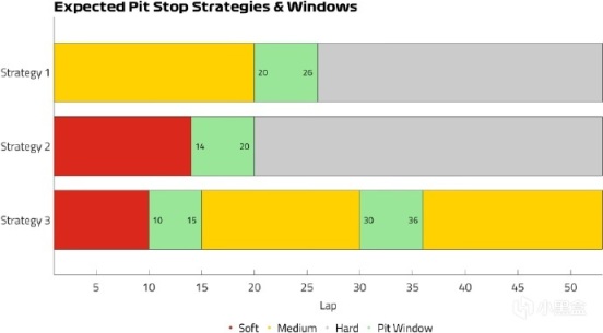 輪胎策略:蒙扎賽道提供三種不同輪胎策略,中性胎-硬胎 / 軟胎-硬胎 / 軟胎-中性胎-中性胎,軟胎的衰竭“懸崖點”預計出現在22圈,中性胎的衰竭“懸崖點”預計出現在28圈,根據此前的正賽長距離模擬,紅牛最快,法拉利落後0.12秒,隨後是梅賽德斯(+0.32秒)和邁凱倫(+0.35秒)。