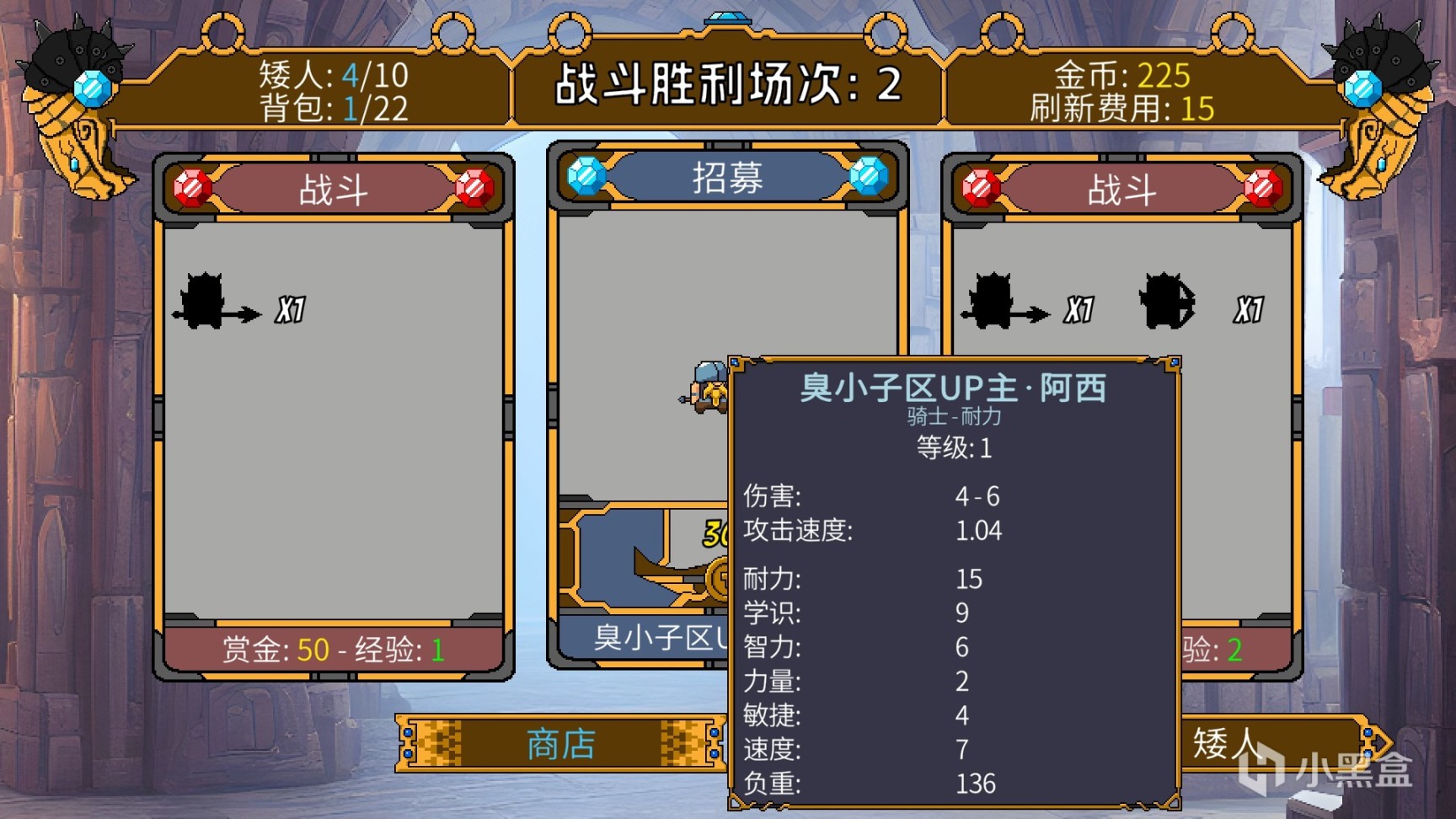 与其他游戏不同的是,游戏中的战斗事件与矮人招募、购买装备是属于共一个刷新池子的。在这个刷新池里,玩家可以根据当前需要,或是挑战强敌,或是欺负弱小,获取最大价值。但是游戏没有基本的保底机制,当战斗、招募、装备三种不同的体系共享一个刷新池的时候,幸运的比重变得非常大。由于不断刷新池子的价格会越来越多,很多时候,玩家经常会因为刷不出合适的矮人或装备,导致面临强敌,从而游戏失败。游戏设计了投降机会,也就是举白旗机制。当玩家每进行5次战斗,就会得到一次举白旗的机会。但这个机制只能弥补一定程度的脸黑,运气不好的人还是该死就死。