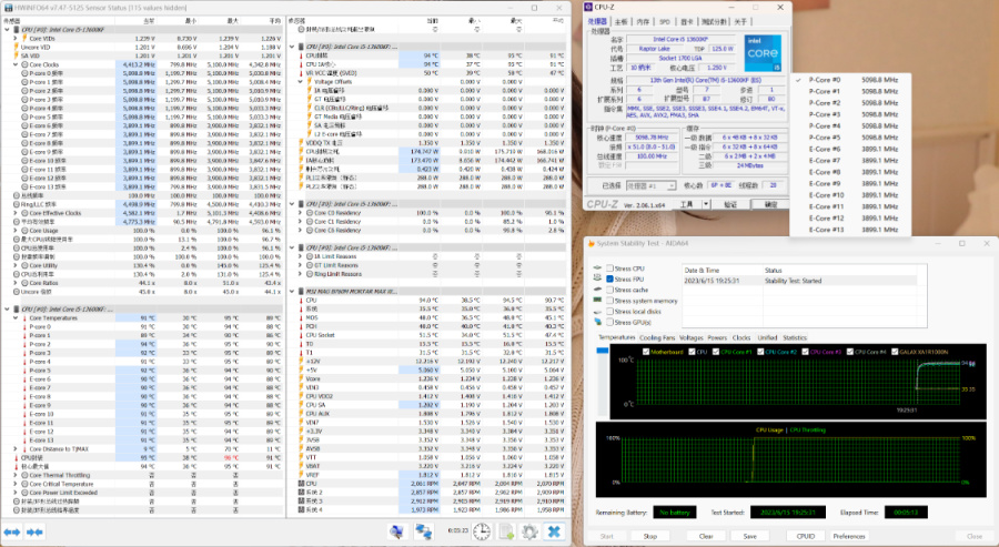單烤FPU測試,室溫28°, CPU溫度爲94°左右,CPU功耗爲180W左右;