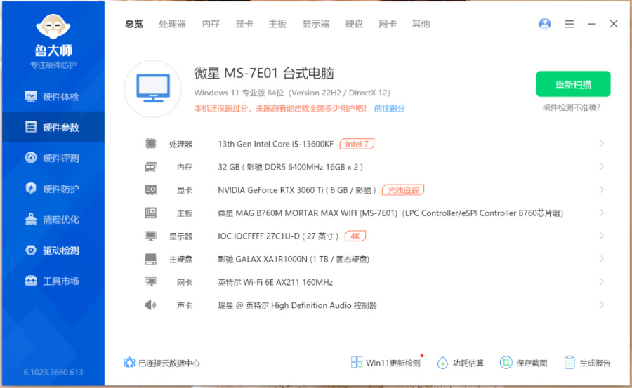完整配置單:i5-13600KF處理器、微星B760M Mortar MAX WIFI迫擊炮主板、德商德靜界PURE ROCK 2 FX風冷、影馳星曜 D5-6400MHz 16G*2內存、影馳星曜X4 Pro 1T M.2固態硬盤、影馳RTX 3060Ti 金屬大師 G6X OC 顯卡、德商德靜界PURE BASE 500 FX機箱、影馳 GL-850 金牌全模組電源、德商德靜界 Silent Wings 4 140mm高速風扇*3、德商德靜界 Silent Wings Pro 4 120mm風扇*3…