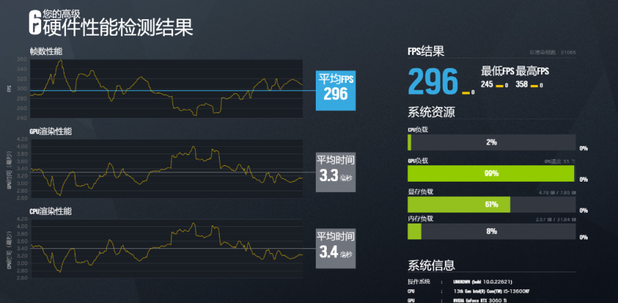 《彩虹六號·圍攻》基準測試,畫質超高,2K分辨率,遊戲平均幀率爲296FPS;