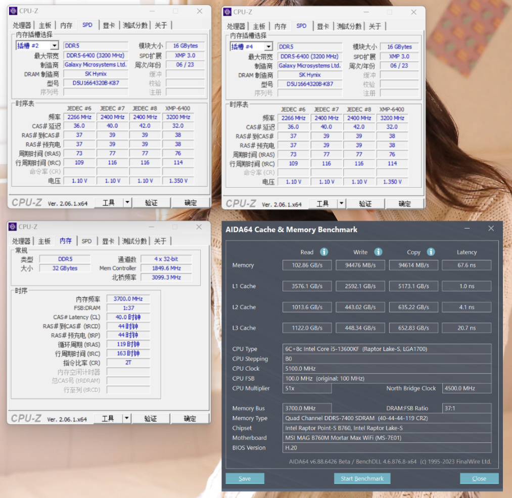 咱機子雖然很早前就裝了,但是咱也是絕對跟得上時代的人,內存當然得選D5。可能當時沒想太明白,選擇了白色的影馳星曜 D5-6400MHz 16G*2內存,但是海力士a-die顆粒加持下,日常7200MHz高頻下運行基本零壓力。