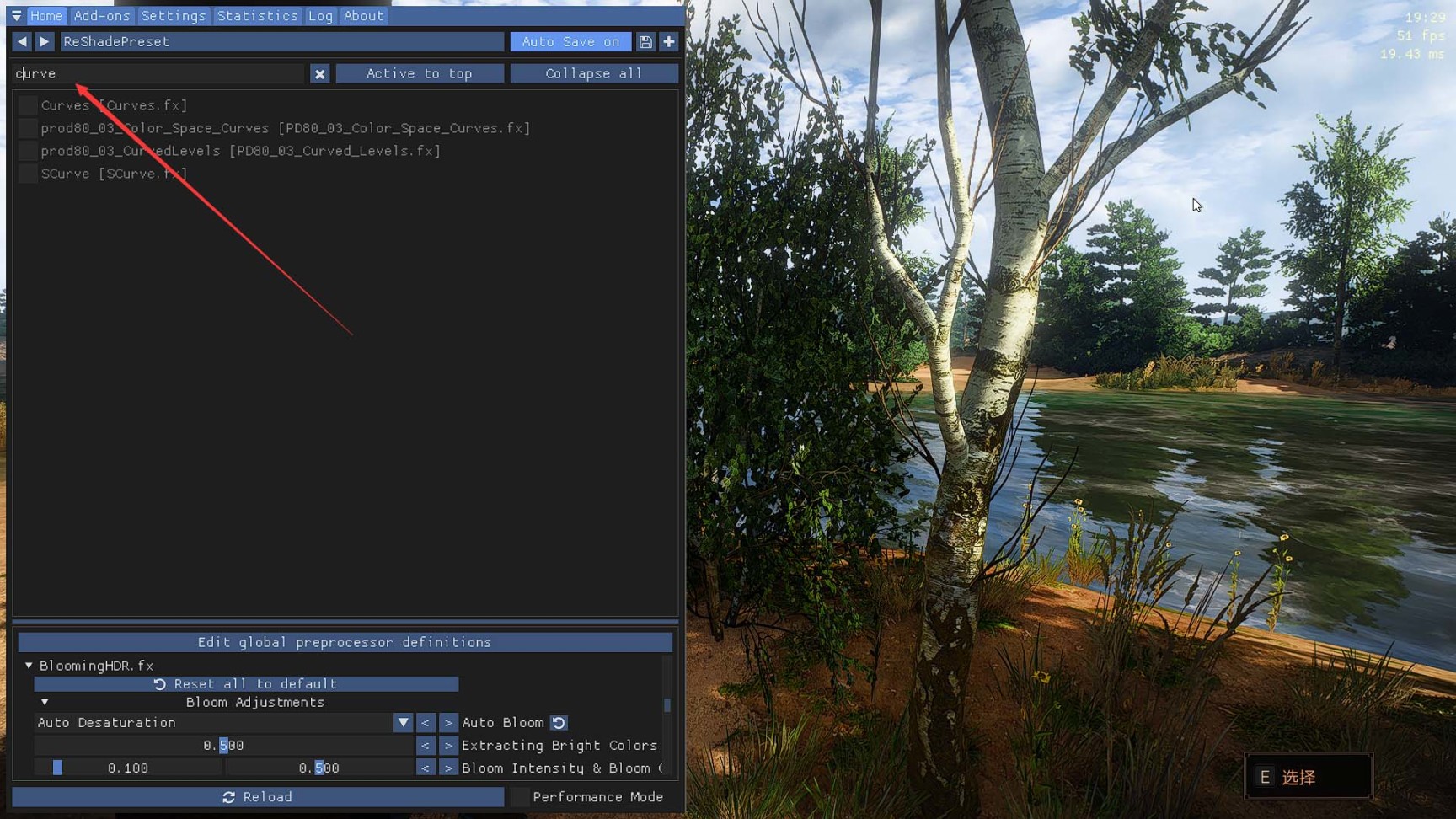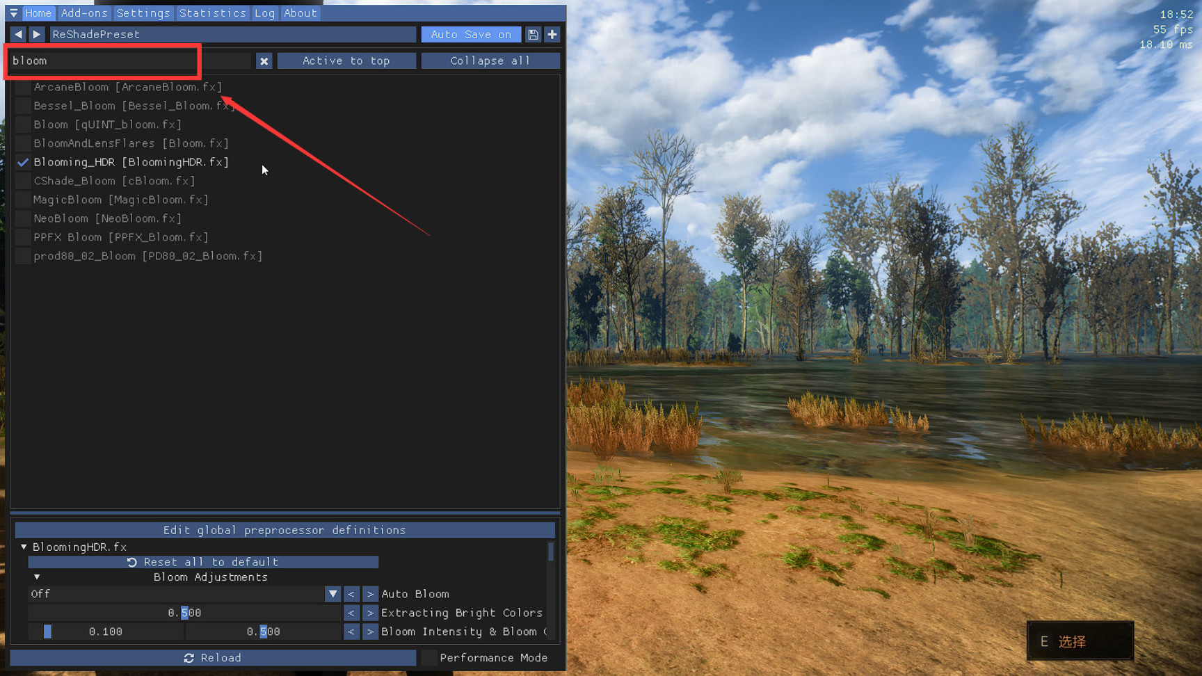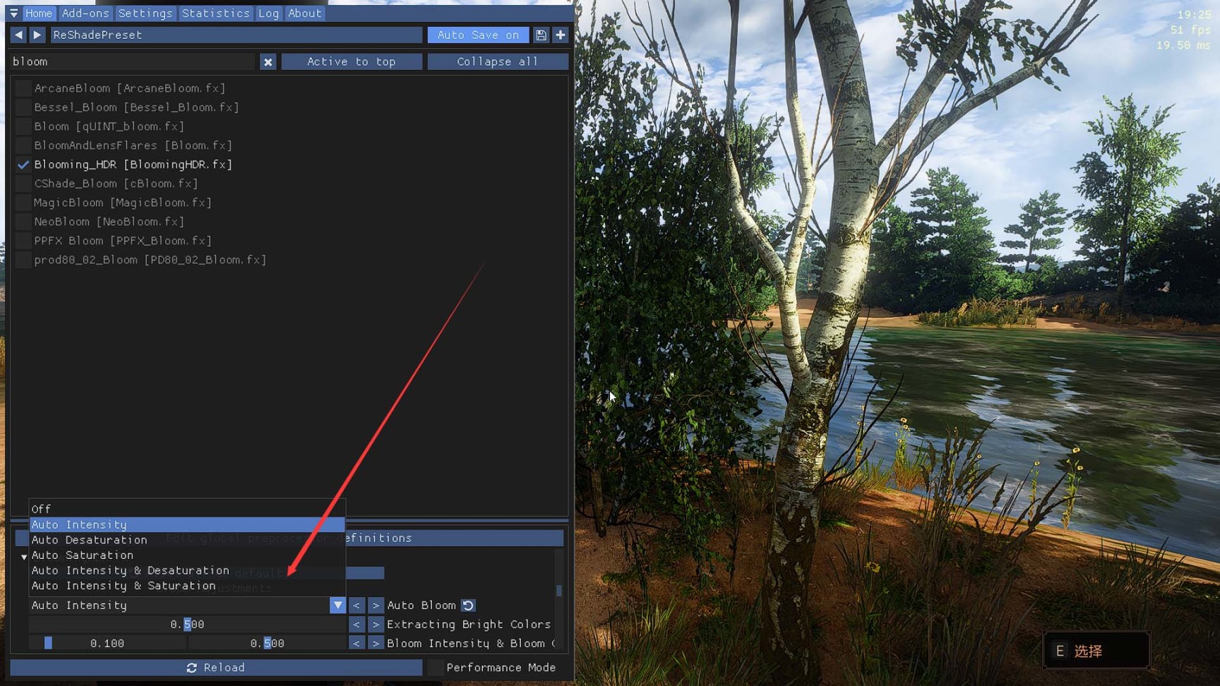 个人推荐使用Blooming_HDR,掉帧比较少,同时也也能提升有光环境的亮度差,对区分物体帮助比较大。