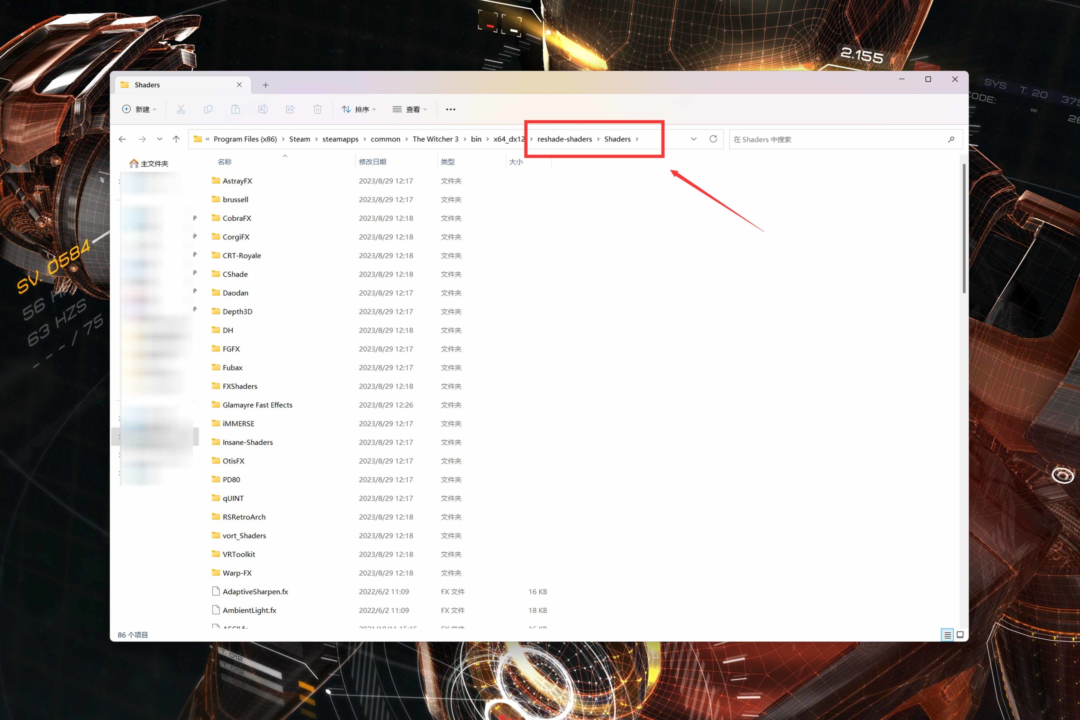 打开这个文件夹之后,依次进入reshade-shaders文件夹下面的Shaders子文件夹,将滤镜文件直接复制过来,可以是文件夹的形式,之后重启下游戏让Reshade加载下即可。
