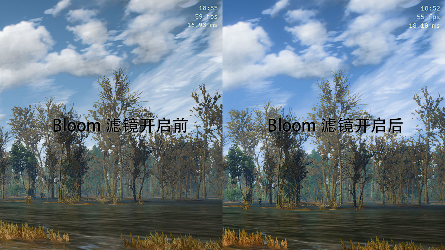 上述三款都属于不会降低太多FPS但会提升直接观感的滤镜,整体FPS掉了约10,但视觉效果并不算差,整体相比游戏自带预设的中等特别效要好,具体可以看下图的对比。