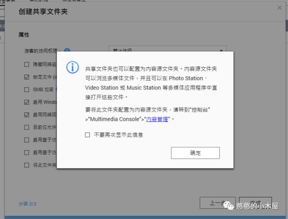 在设置-权限-共享文件夹中添加文件夹,输入文件夹名称,点击下一步。