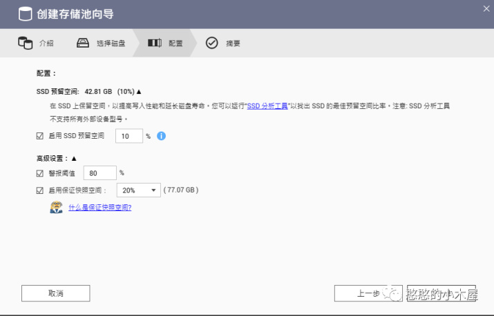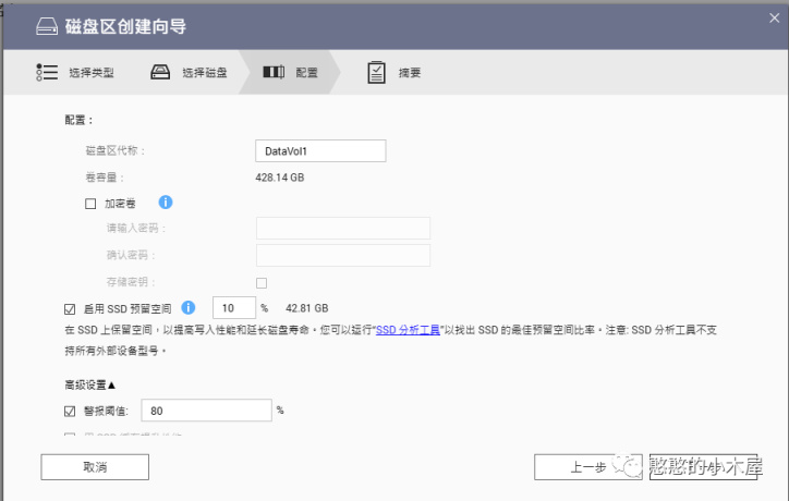 这一步配置存储名称,如果是ssd硬盘建议启用ssd预留空间做op(预留空间),可以提高硬盘寿命和速度。