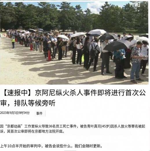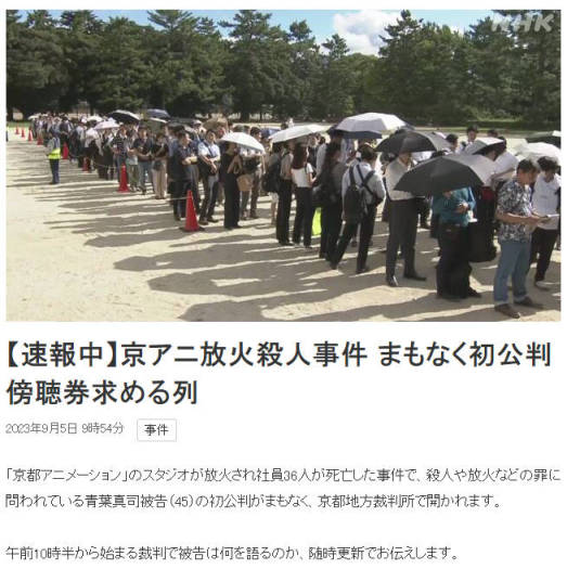 据NHK报道:“京阿尼纵火案”事件中,面临谋杀和纵火等罪名的被告青叶真司将于9月5日9点30分首次开庭公审