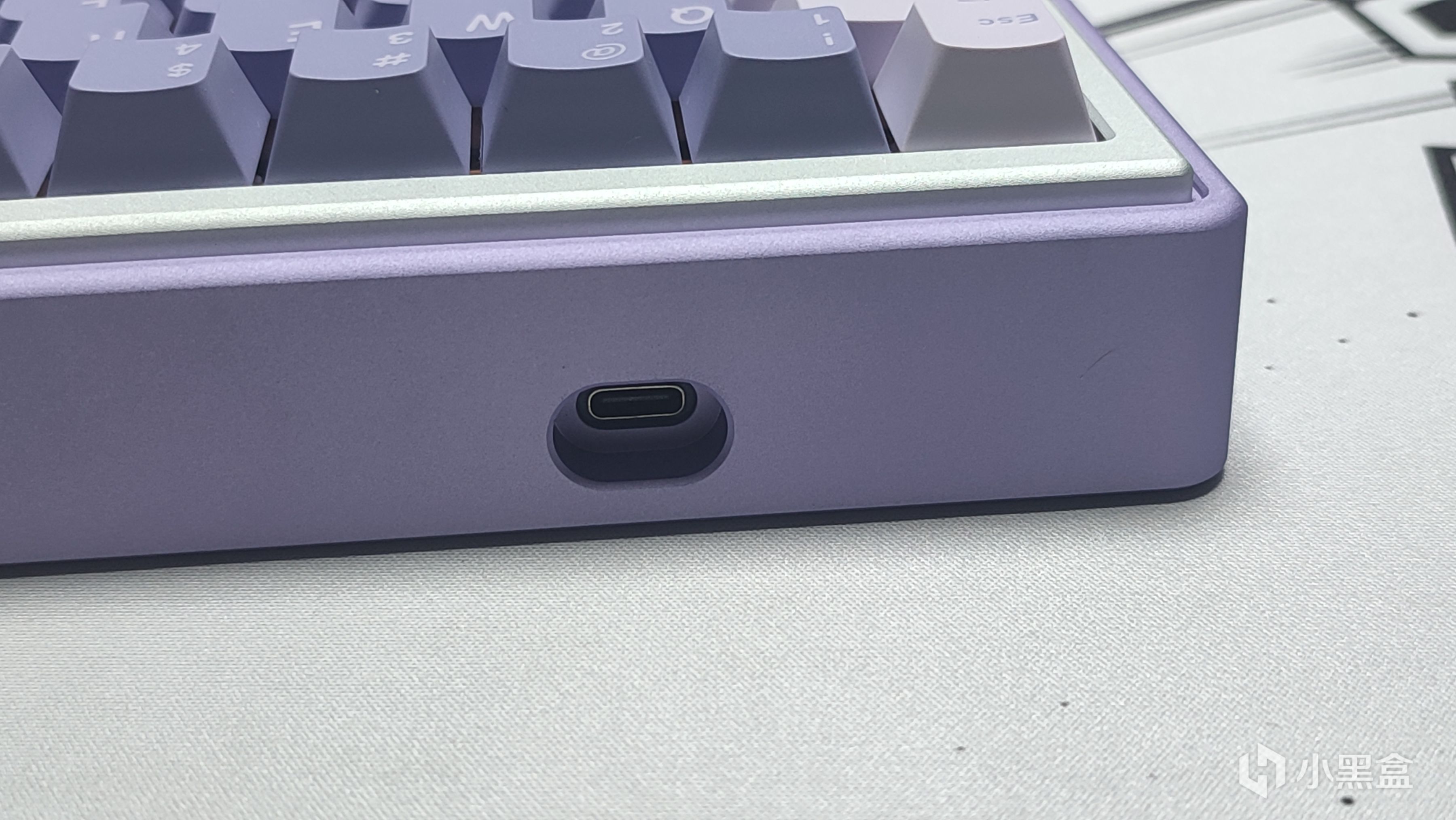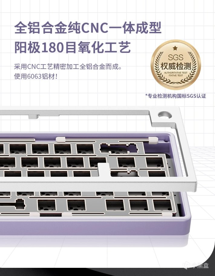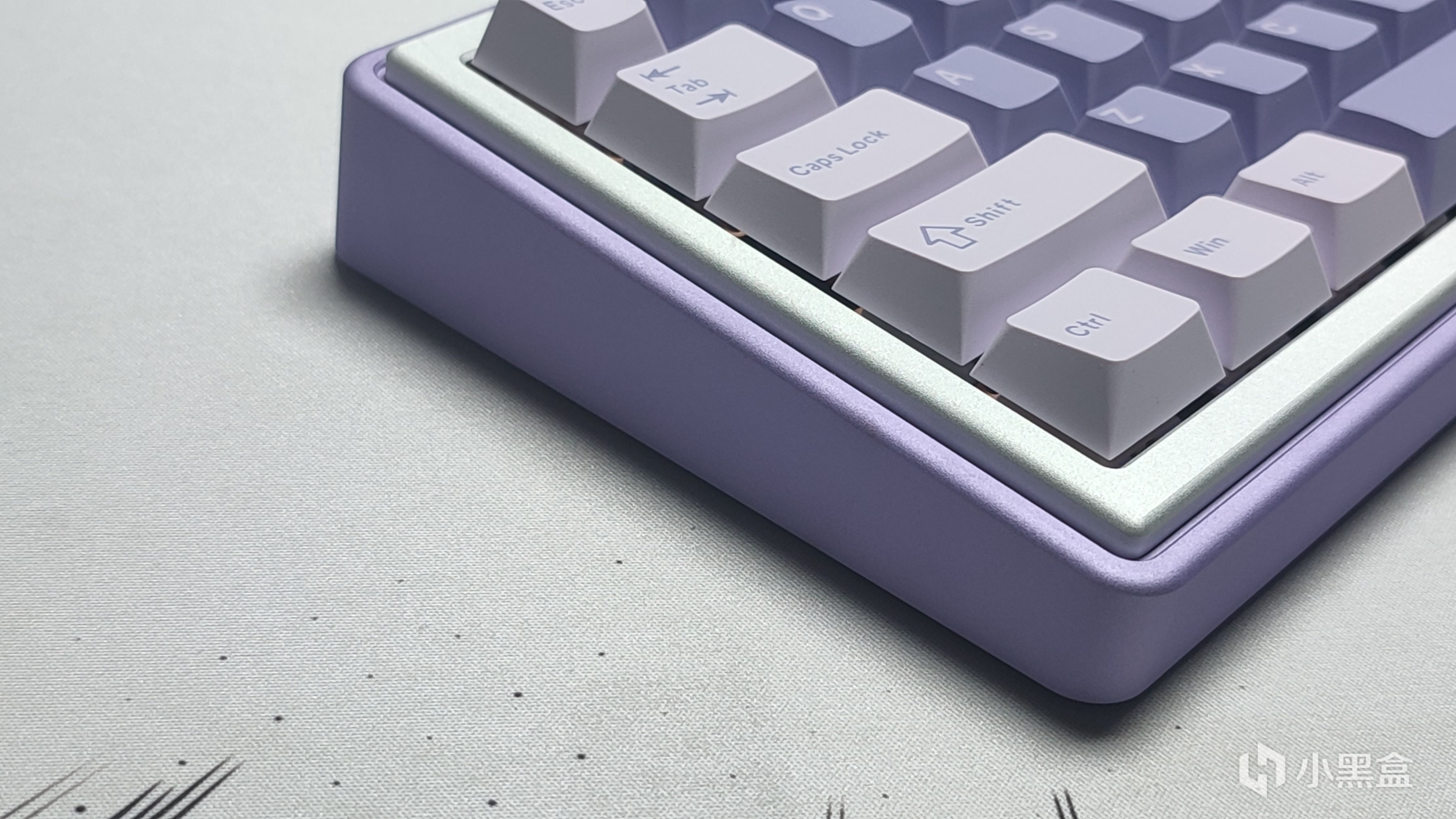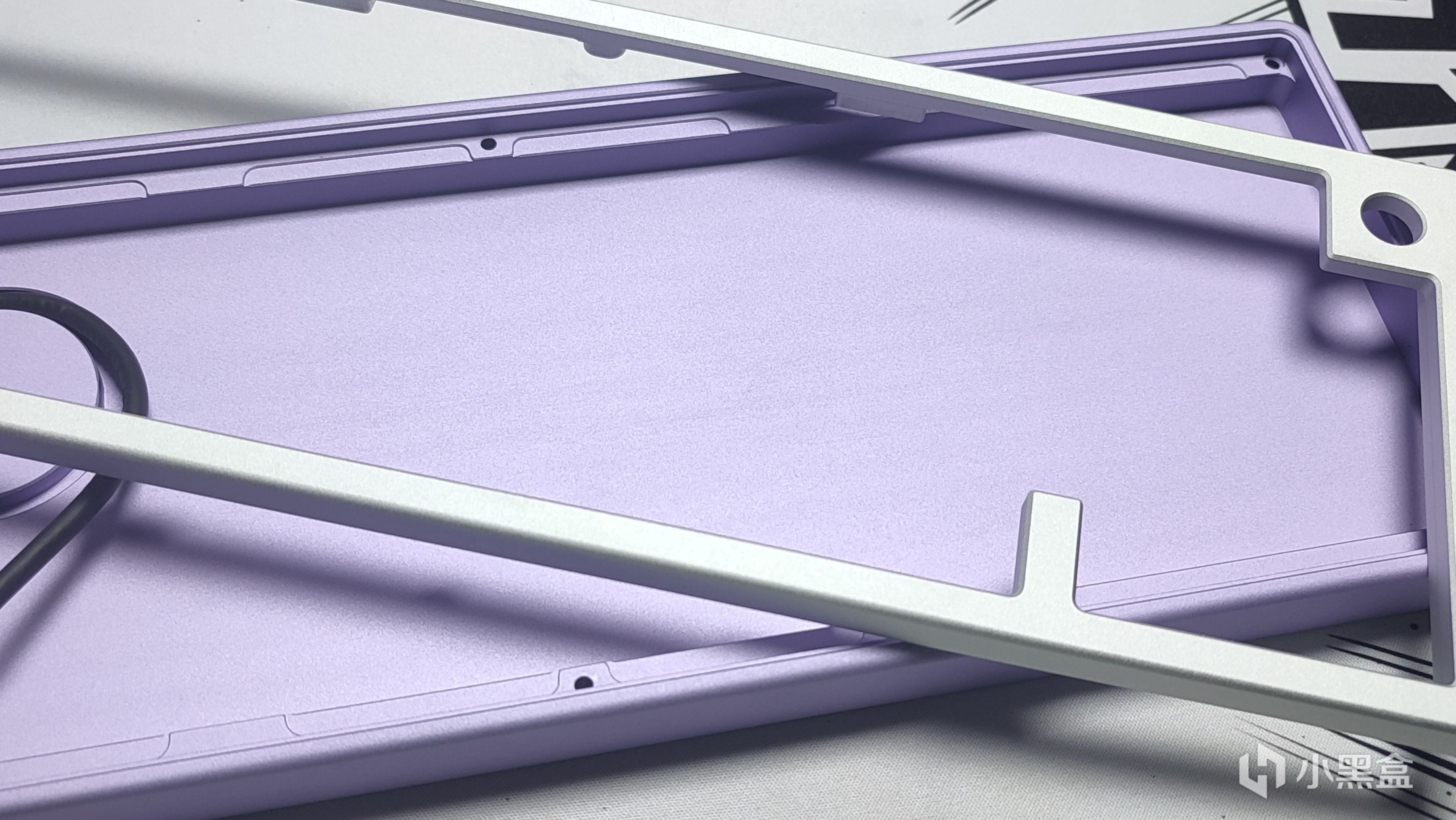 底壳采用的是淡紫色配色,同样是铝合金,整体配色上更有韵味,正巧这款配色就是紫韵。两侧没有镂空,说明了底壳是整块铝块CNC出来的,并不是型材,这一点好评。