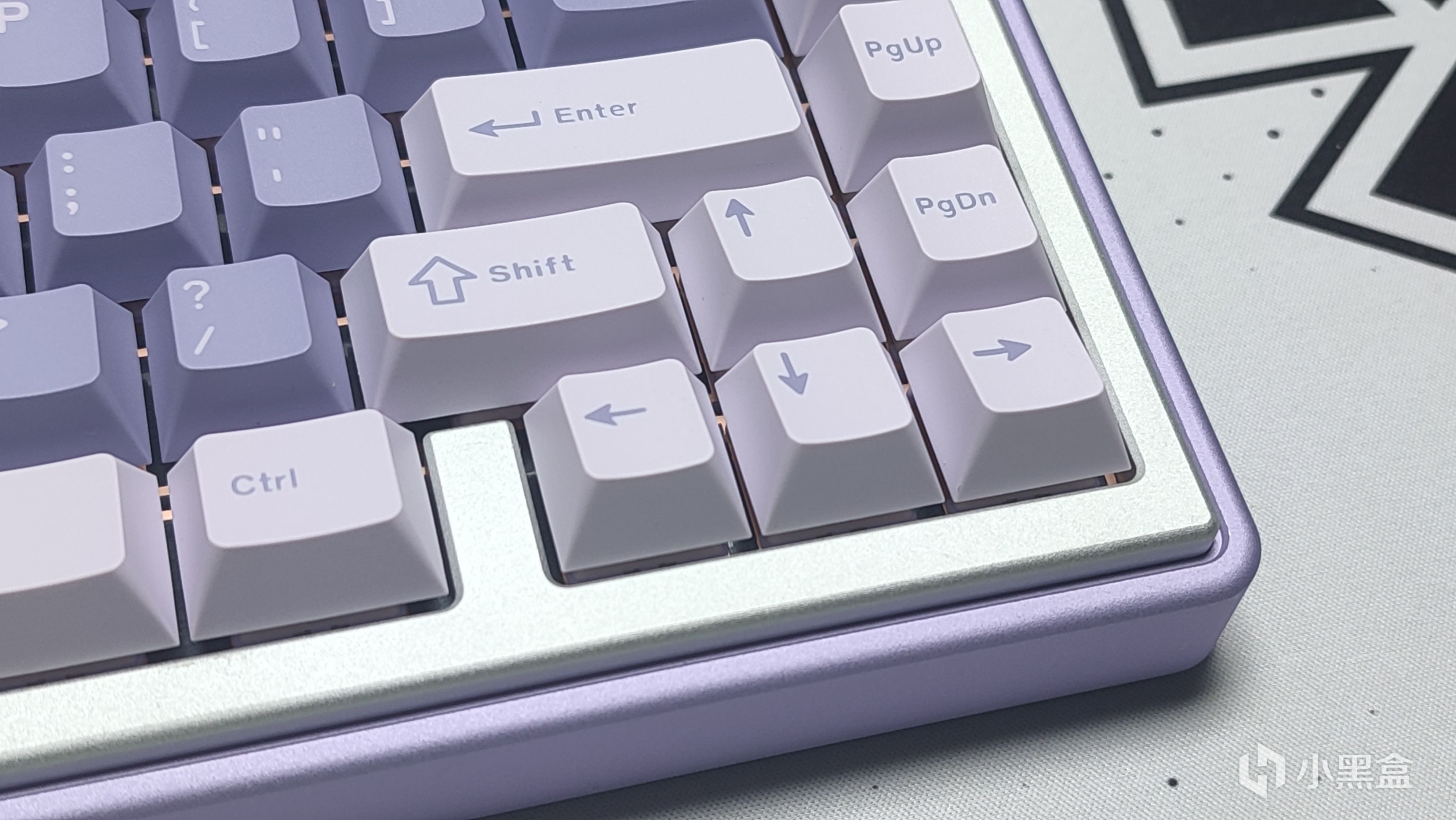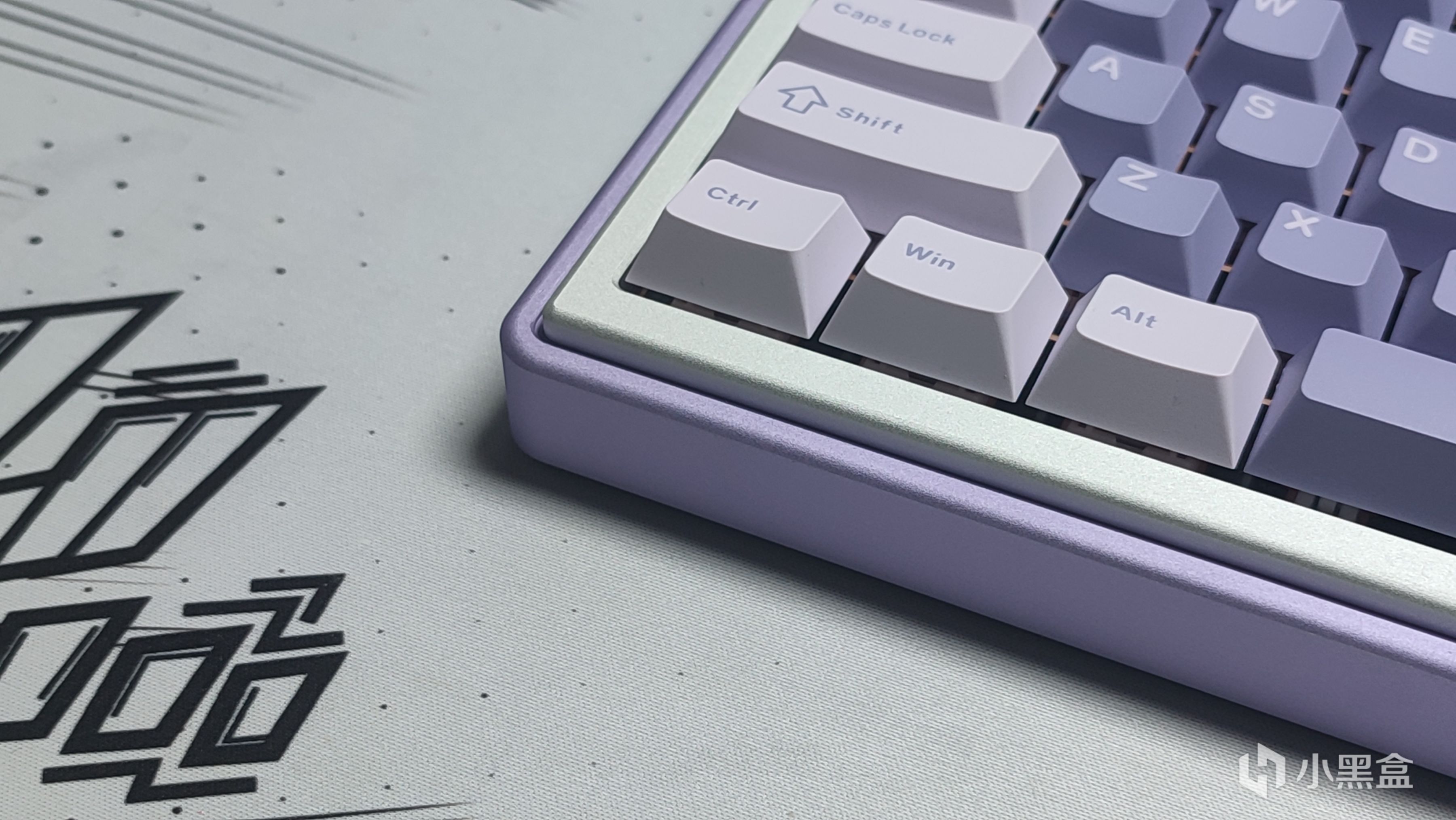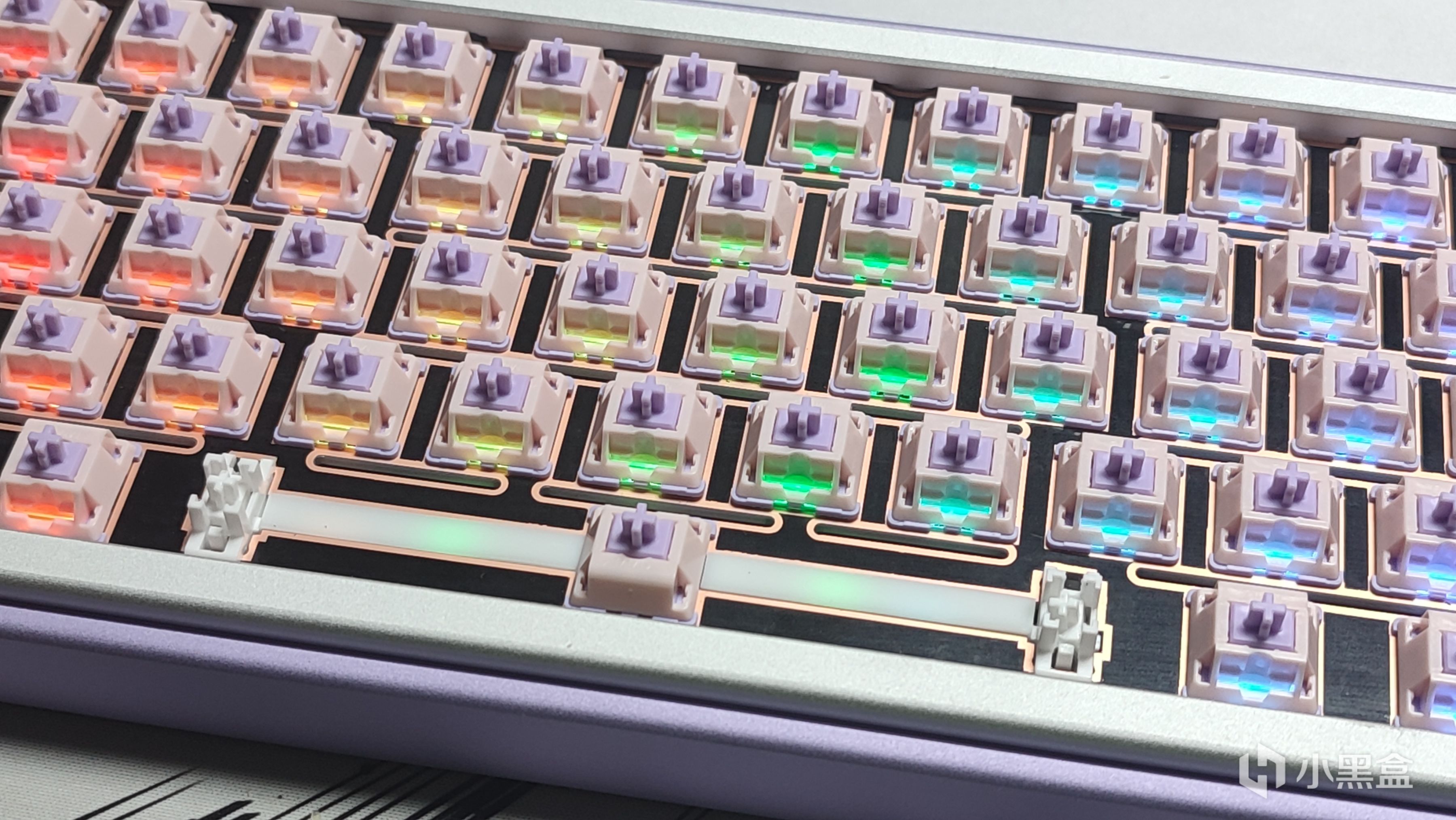 键帽方面没有找到很合适的淡紫色,于是我就征用了我之前测评过的X98P上边的薰衣草键帽,同样是淡紫色配色装上之后还挺搭。