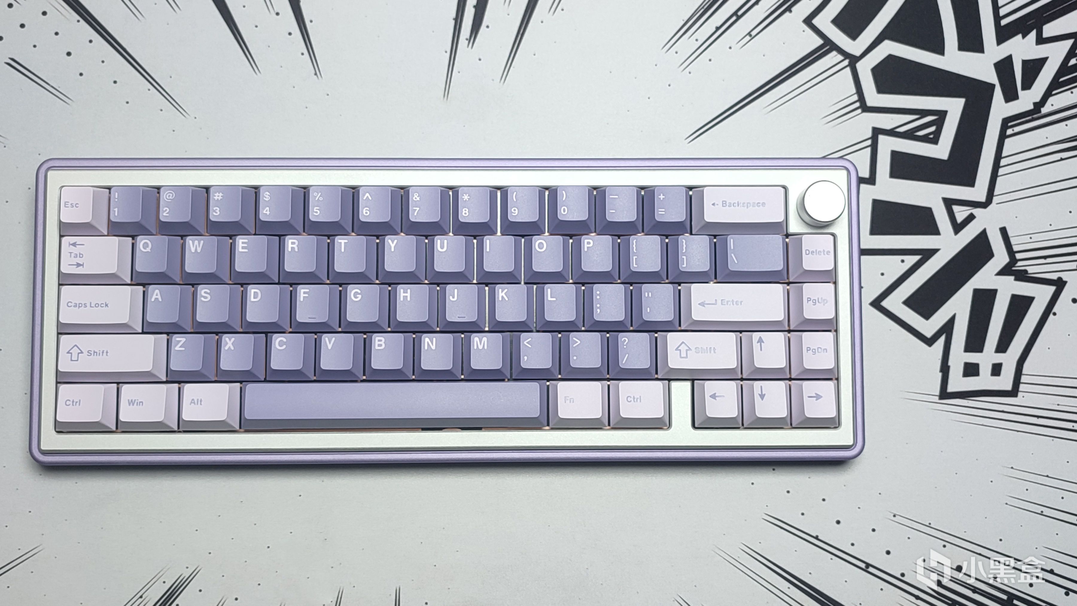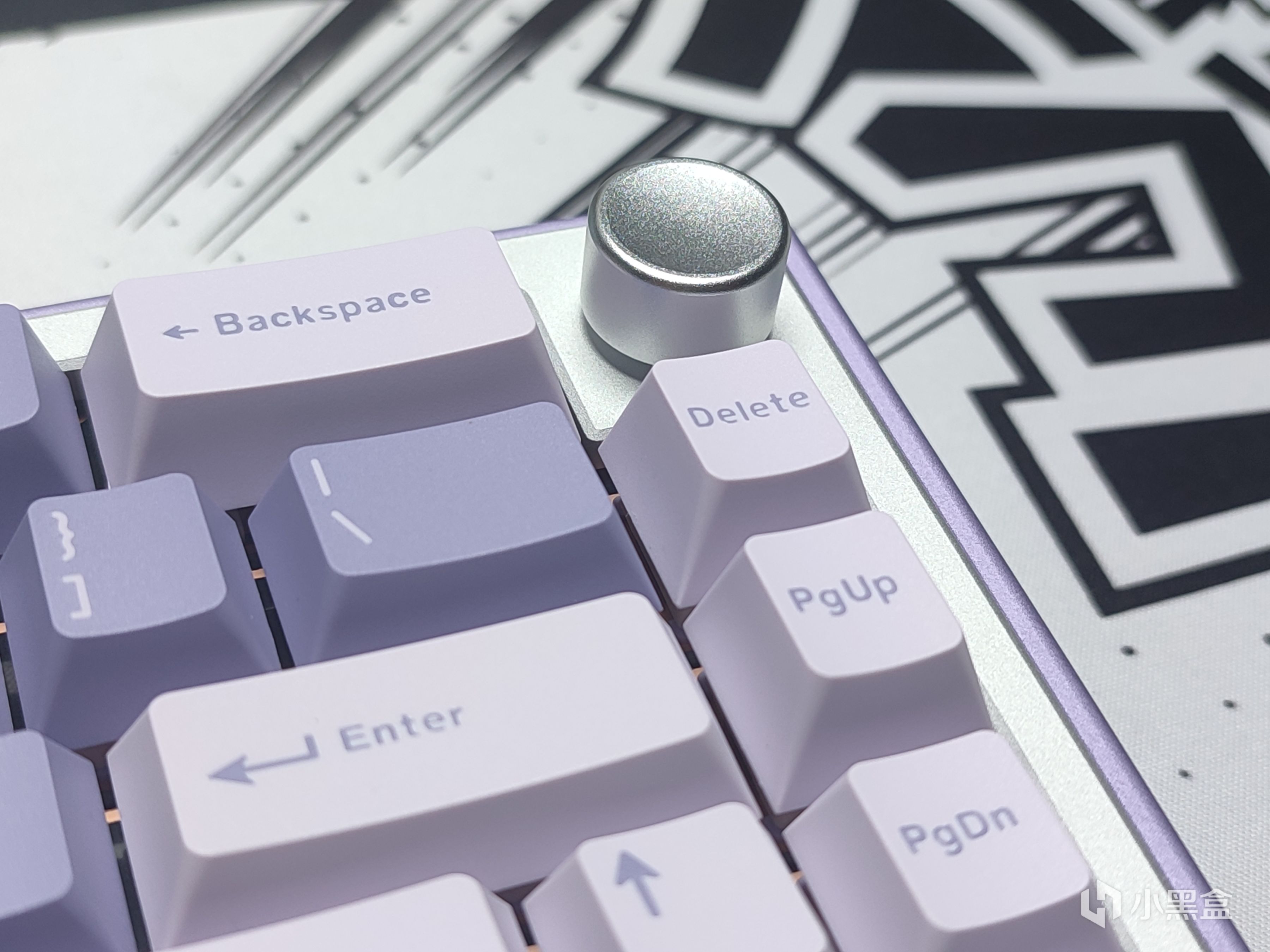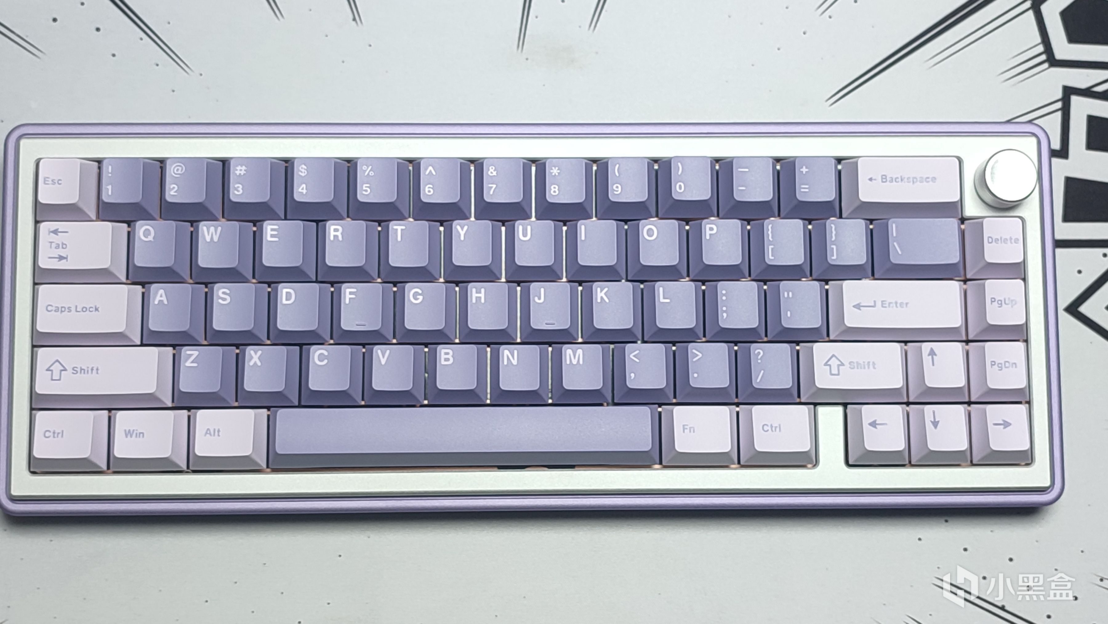 键帽方面没有找到很合适的淡紫色,于是我就征用了我之前测评过的X98P上边的薰衣草键帽,同样是淡紫色配色装上之后还挺搭。