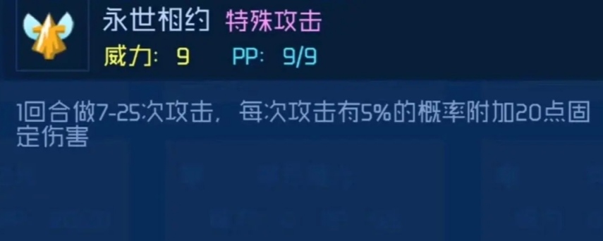 九青有一个叫“永世相约”的技能。从这个技能的威力和PP值可以看到有个 999 的私货,技能描述中更是有个 725(清爱我)和 520 ,这位策划的司马昭之心,可谓是毫不掩饰,路人皆知了。