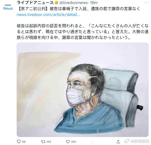 据日媒,京阿尼纵火案嫌犯青叶真司坐轮椅参加庭审,承认指控内容,但没有向被害者家属道歉。
