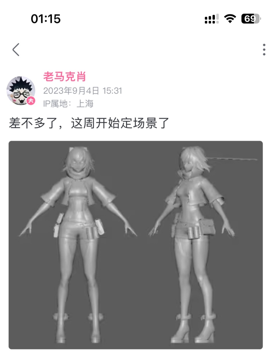 就在我写下这篇文章前几个小时,游戏主创马克在B站发了一条“差不多了,这周开始定场景了”的动态,并附上了新一部艾希的人物模型图。
