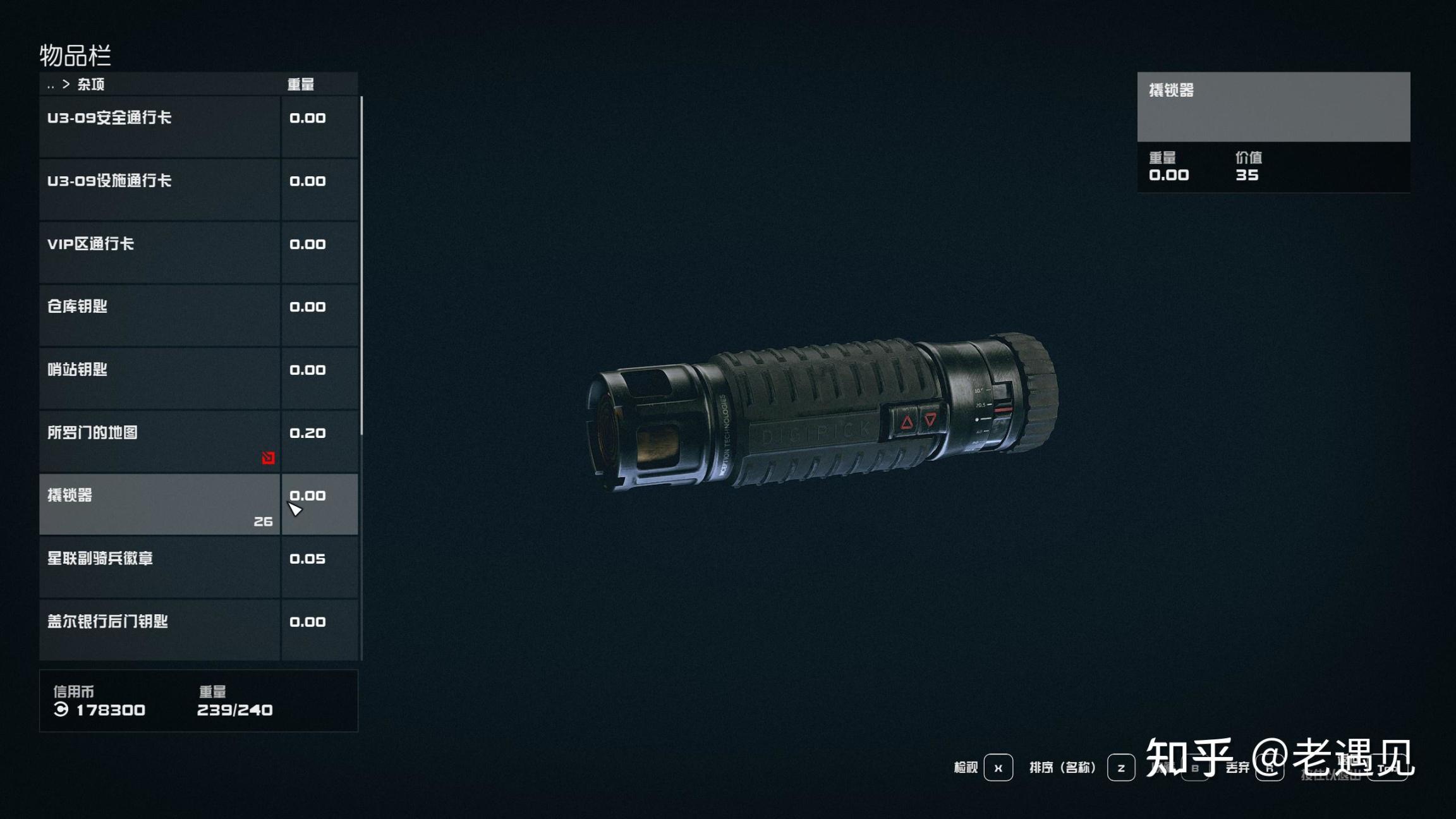 杂项里面重要的就是一堆钥匙和撬锁器,其他的就是我们日常中捡的垃圾了,不是资源的,不能吃的,那基本就是垃圾了。很多人会看到一些价值比较高的,就想带走,其实价值高的往往比较重,而且实际出售的价格并不是上面标注的价格,会打折扣,可能打很多折,所以不要想着靠这些垃圾发家致富了,少带一点东西跑的快点才是王道啊。