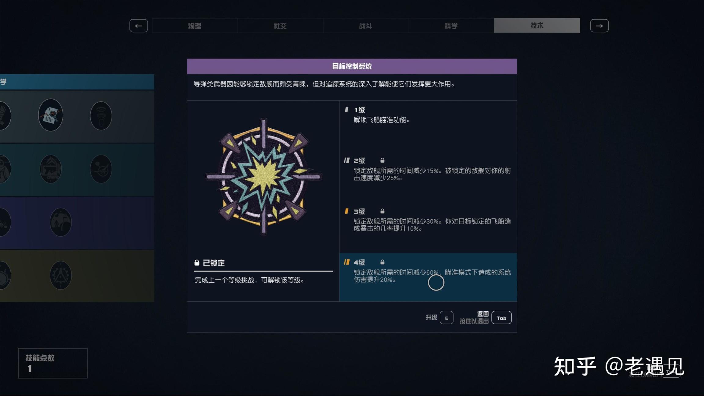 目标控制系统主要用于太空战斗,可以锁定敌方飞船精确打击,这个对于打架能力提升很大,而且任务里面有不少太空战斗的情景,又不太好操作,这个技能就至关重要了。