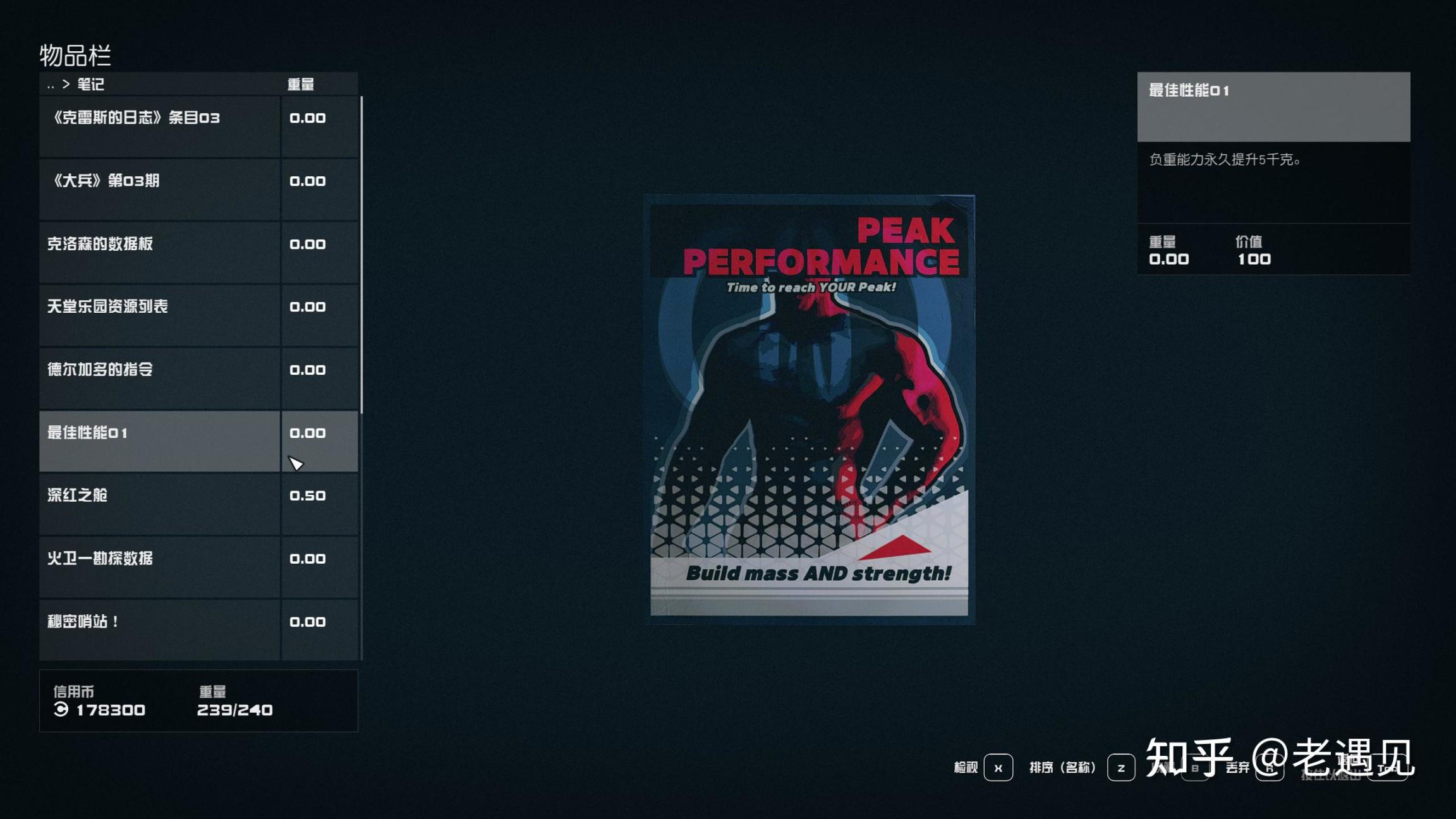 然后就是最重要的,不要看到东西就拿上,游戏中从头至尾可以拿的东西非常非常多,而我们的负重其实很低,一旦超重走路都耗氧气,赶路很受影响,而且不能快速旅行,对于我们行动的影响极大。