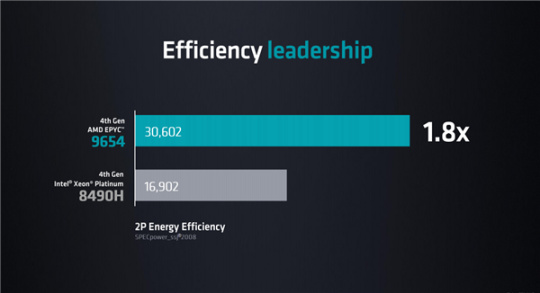 更關鍵的是,性能非常高的同時,EPYC的能效也非常高,性能優勢也達到1.8倍左右。