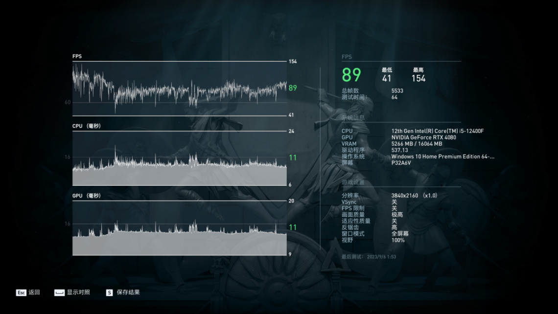 刺客信條:奧德賽 4K分辨率預設最高畫質,平均幀數89幀