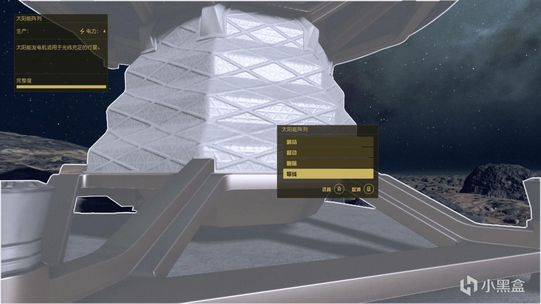 建立了哨站之后先拍下两个太阳能阵列(单个太阳能的电能产出是4,氦3采矿机的电量输入是5)