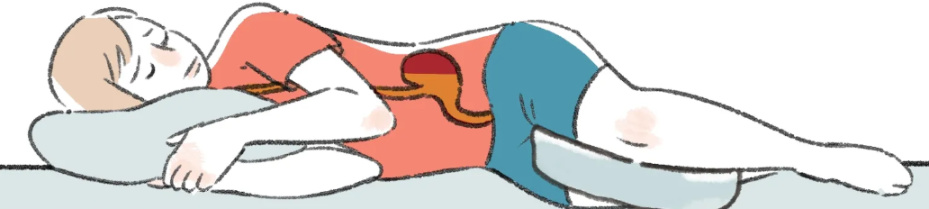 - 右侧卧时,胃到十二指肠的出口均在下方,可以帮助身体进行更顺畅的排便