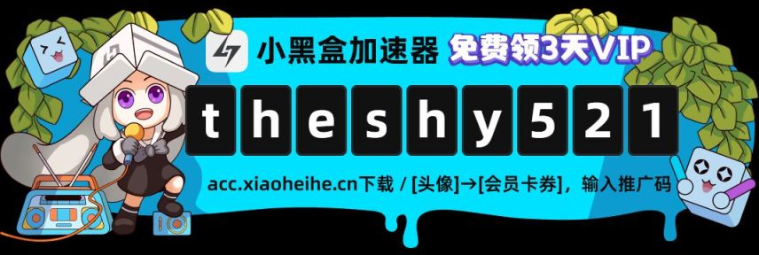 小黑盒加速器“会员卡券”选项输入theshy521或LOL666即可白嫖三天加速时长,阿根廷和土区等均可加速