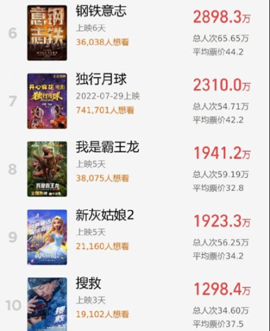 2022國慶檔(10月1日-10月7日)總票房(含預售)突破11億。