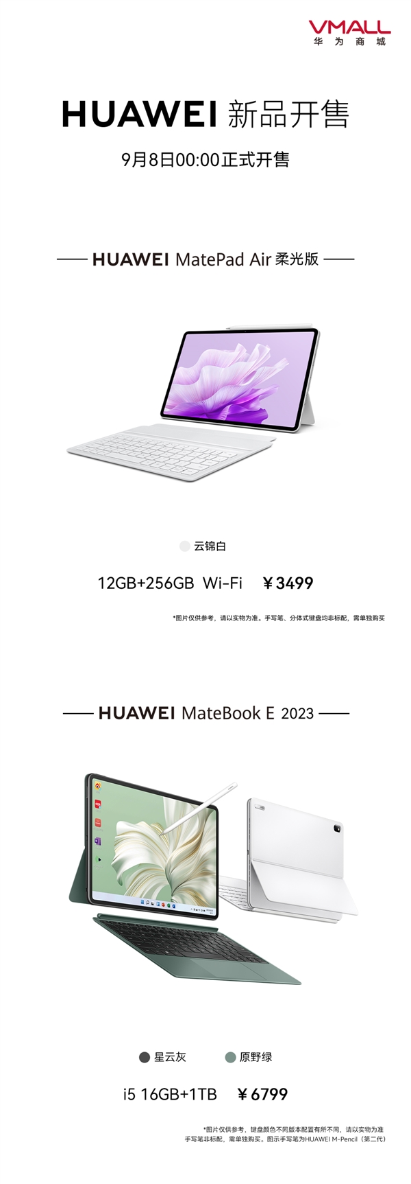 MatePad Air柔光版是一款新品,12+256GB售价3499元。