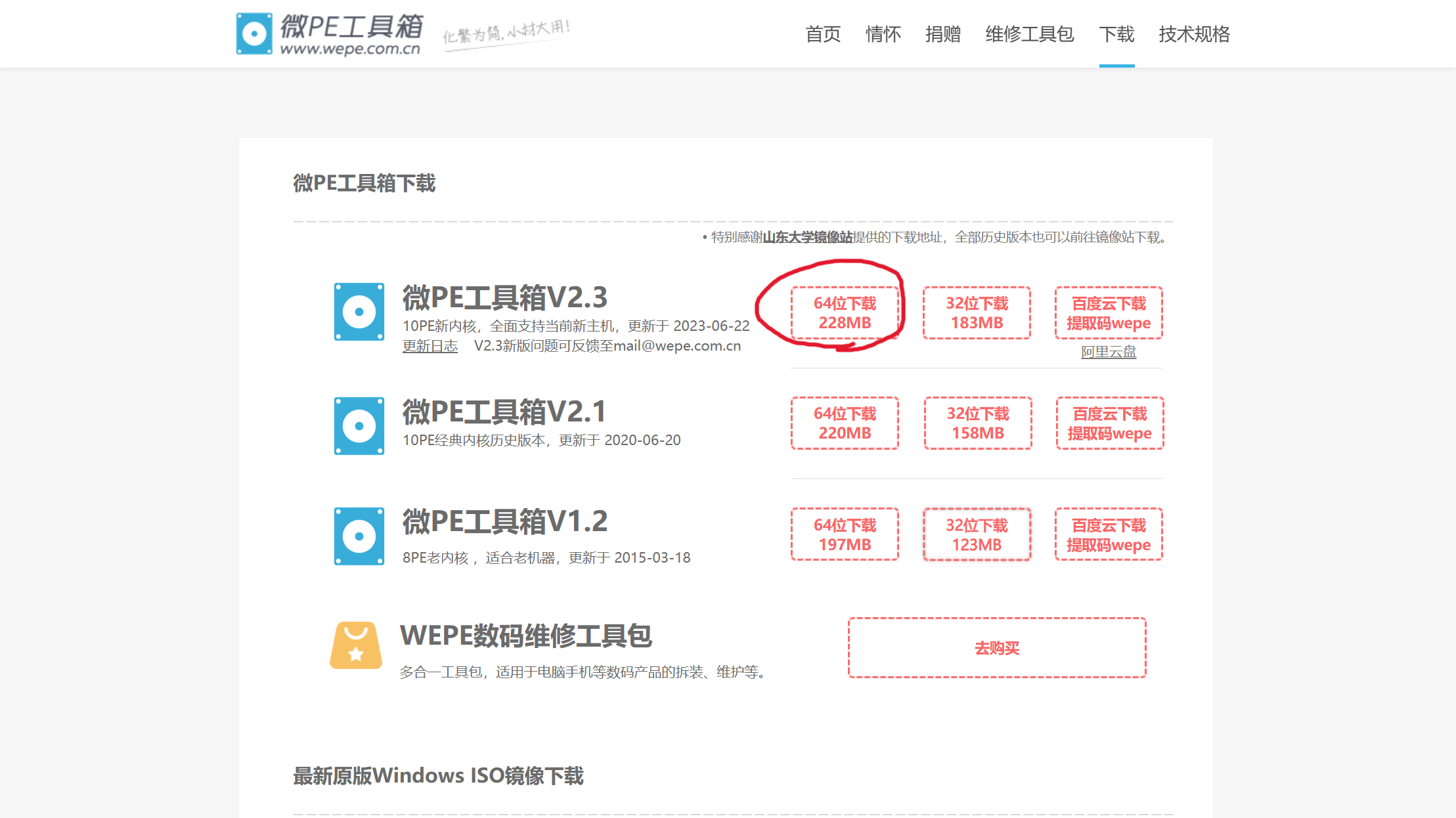 1)首先我們搜索微PE進入微PE工具箱官網,點擊下圖紅圈位置下載