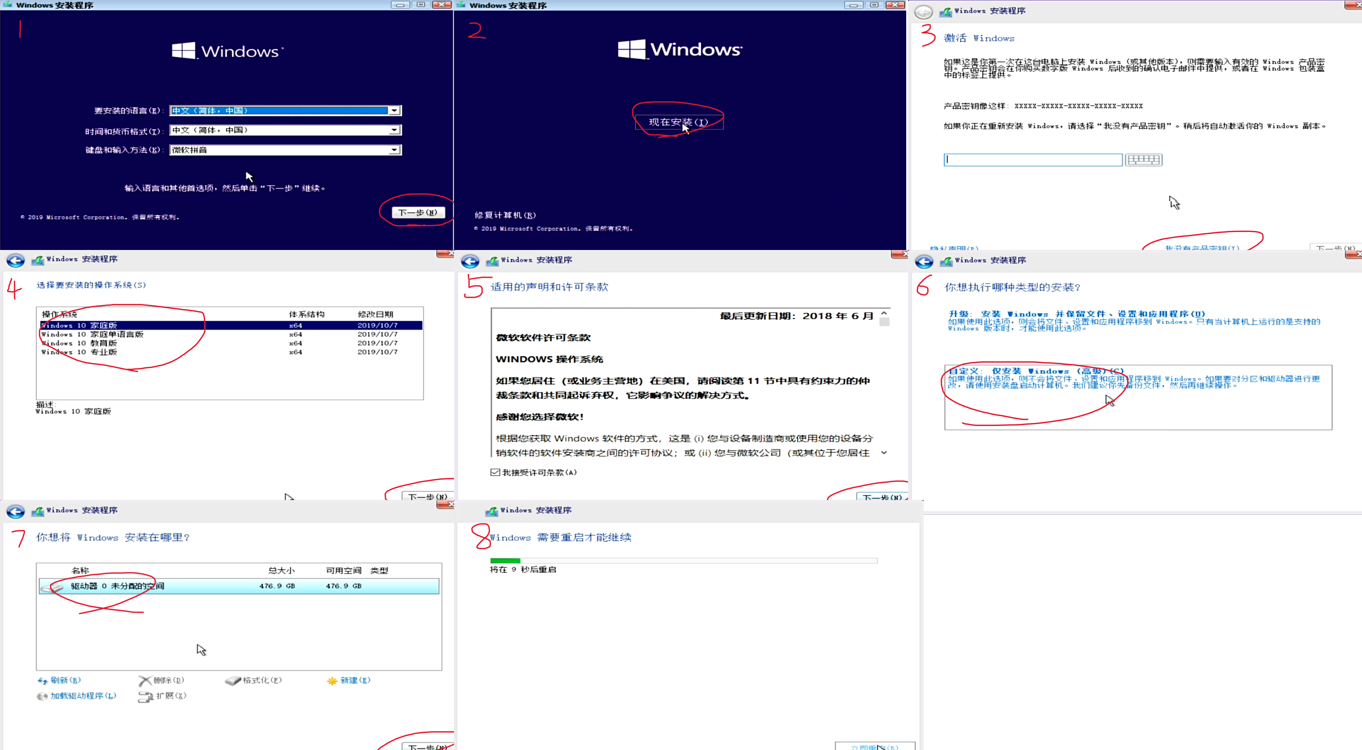 這一次打開電腦不用按任何按鍵,直接進入安裝引導,這裏可以先選擇沒有密鑰,然後選擇你要安裝的系統版本,然後選中你準備的系統盤,接下來就可以不管了,讓它自己安裝吧,記得不要斷電。