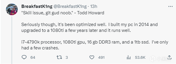 隨後,不少玩家和遊戲媒體轉發了todd的言論,該言論引發外網熱議