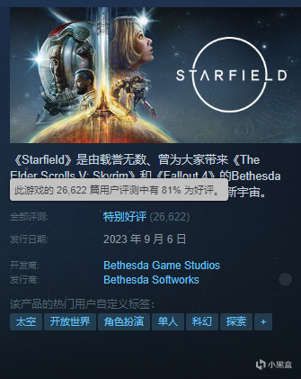 目前截止發稿時《星空》steam上收錄26622位玩家的評價,綜合好評率81%——特別好評。