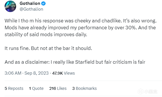 雖然我很喜歡《星空》,但是公平的說,陶德的言論是厚顏無恥的。這也是錯誤的。當下mod讓遊戲的表現提高了30%,穩定性也日益提升,但是這些不應該是mod網站來做(而是貝塞斯達該做的任務)。