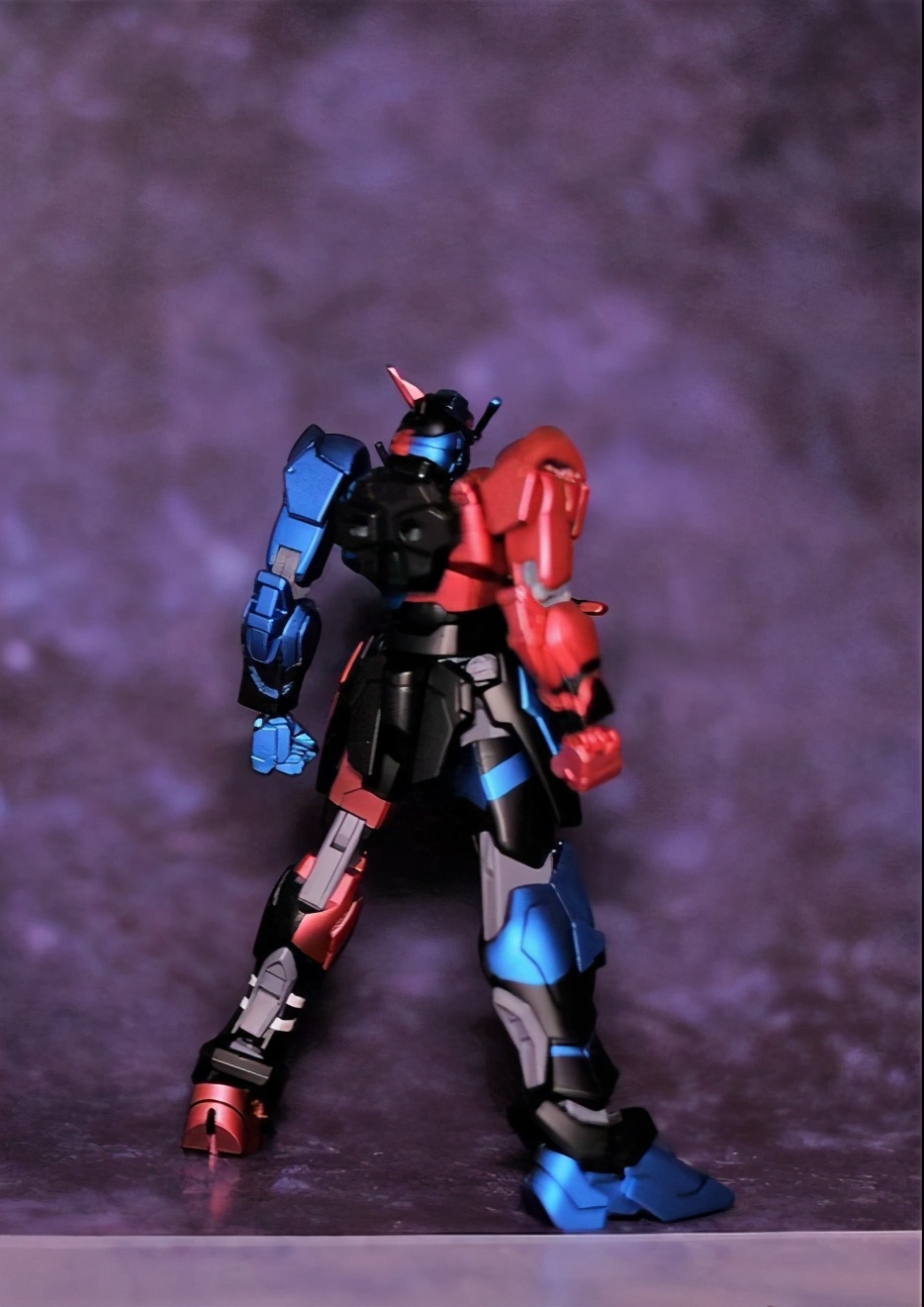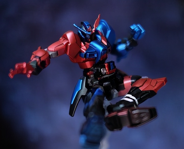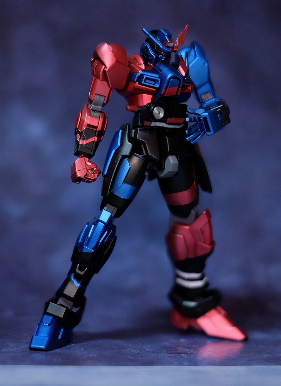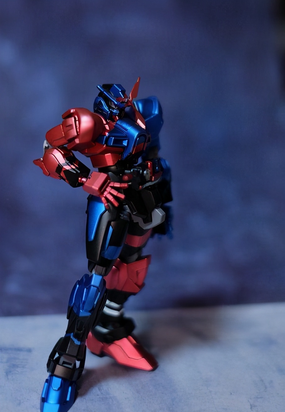 模友將假面騎士的紅藍配色進行了移植,完美地移植到了創制燃焰高達模型上,尤其是頭部的天線細節,只一眼就能認出這是假面騎士配色。除了配色完美還原外,模友還爲高達模型裝上了腰帶,要知道腰帶是騎士變身的必需品,搭載腰帶的高達模型就更有騎士的味道啦!