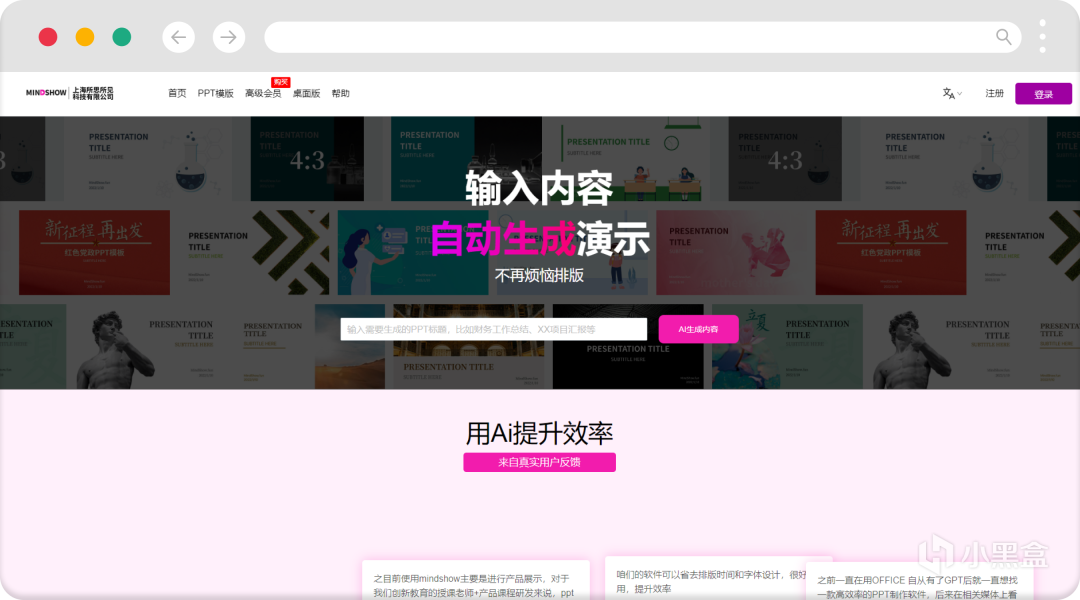 MindShow 是一个用于自动生成ppt的在线工具,它可以根据你输入的大纲文字,通过强大 AI 人工智能自动为你生成漂亮的 PPT 页面,你只需要关注内容,不需要担心格式。MindShow 是国内的应用服务,生成的 PPT 风格也更接近国人的审美习惯,他们还提供了视频教程来指导使用。