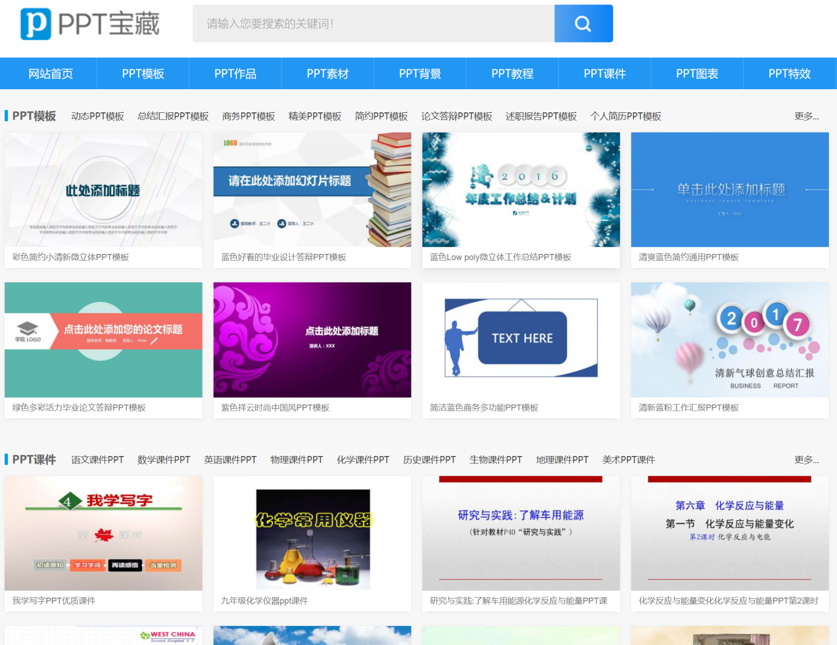 与名字相称的,这个一个PPT模板的宝藏网站,不过,宝藏都是要挖掘的。初入网站,第一眼印象就是感觉质量很低,一看可能都是小学老师教学用的PPT模板,当然,高质量的还是要靠自己找。