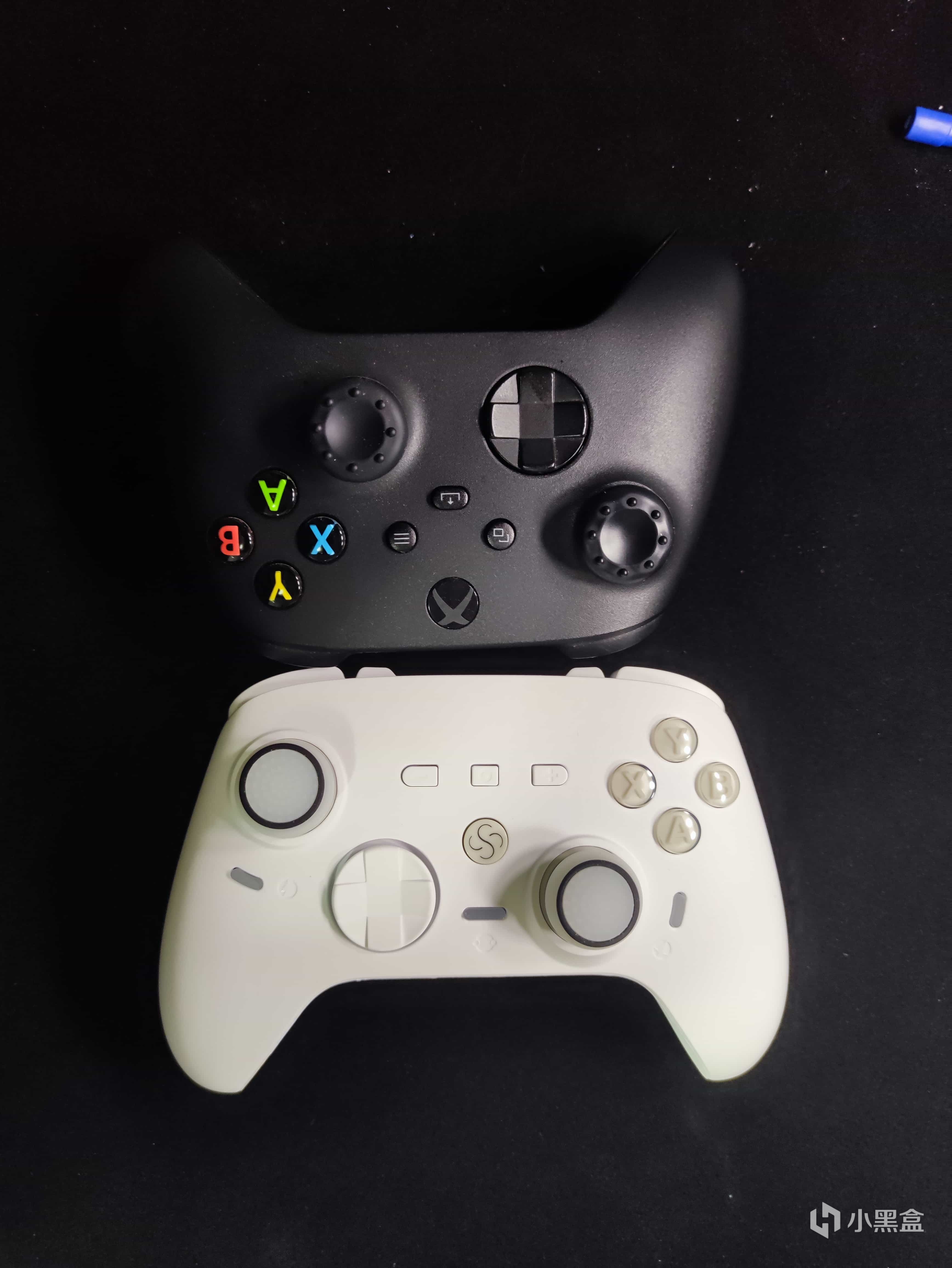 下面將實現拉回手柄身上,手柄的整體長度略長於xbox手柄,但是佈局上並沒有太大變化,搖桿和十字鍵,搖桿和按鍵之間的距離基本上一樣。在手感上來說本手柄更加飽滿,十分適合六指玩家握持。