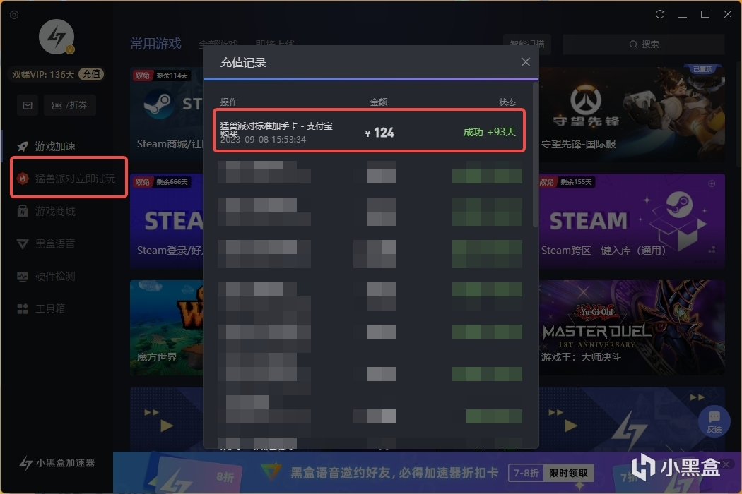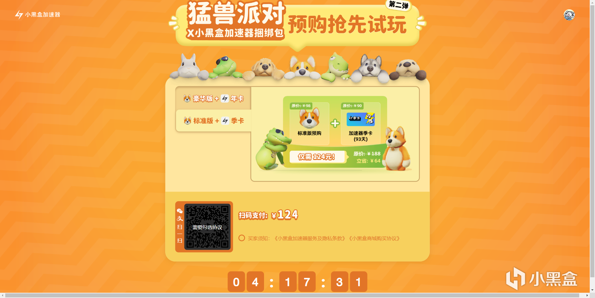 猛獸派對標準版+小黑盒加速器季卡僅需124元!