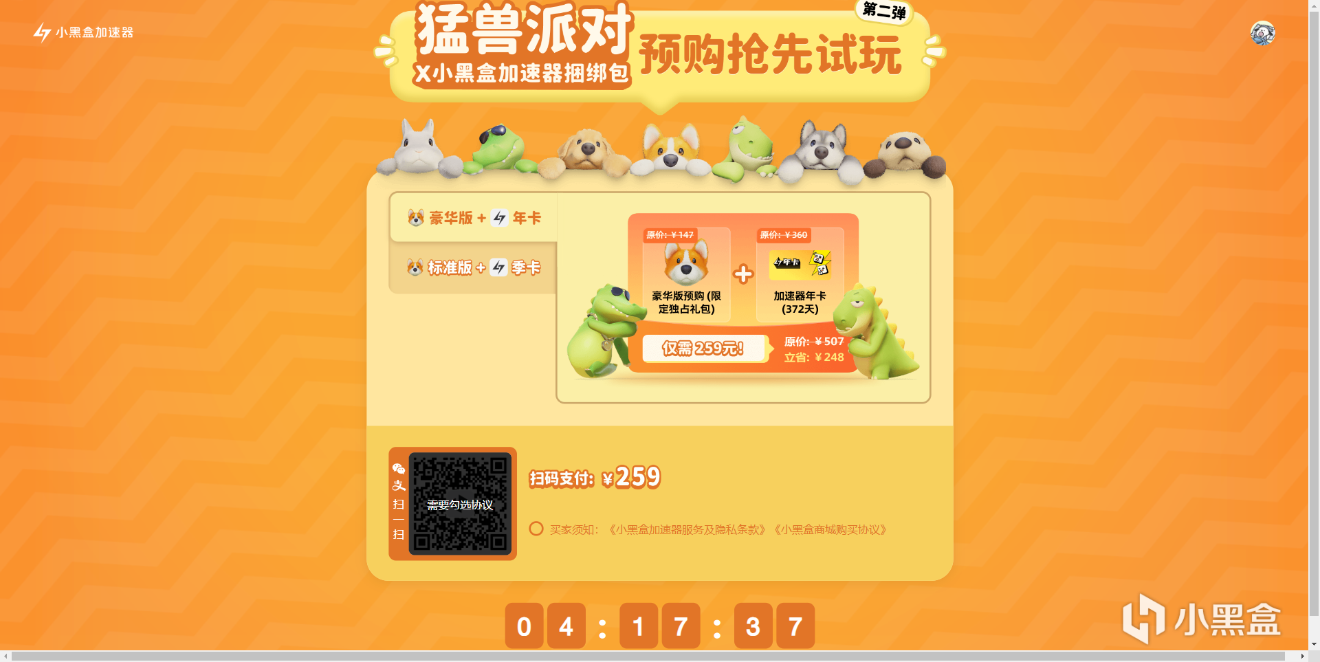 猛獸派對豪華版+小黑盒加速器年卡僅需259元!