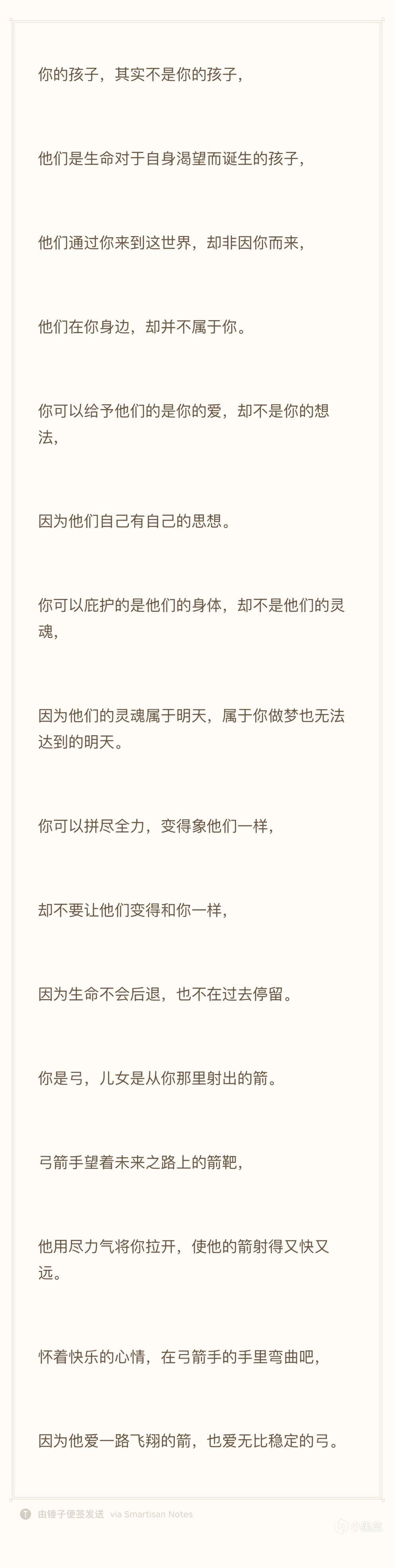 “你的孩子,其实不是你的孩子,他们是生命对于自身渴望而诞生的孩子。”