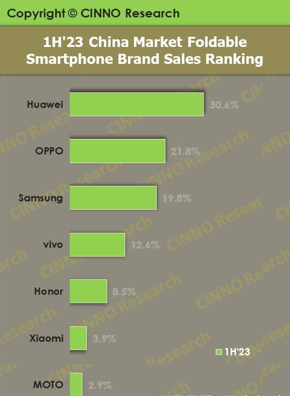 近日《2023年上半年中國摺疊屏手機銷量》榜單出爐,CINNO Research表示,摺疊屏手機市場在2023年展現出強勁的增長勢頭,2023年上半年銷量同比增長72%,連續十一個季度保持同比正增長,成爲國內智能手機市場的一大亮點。
